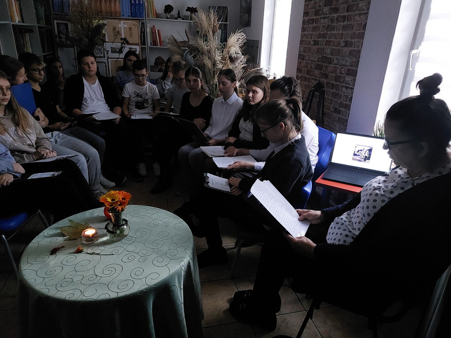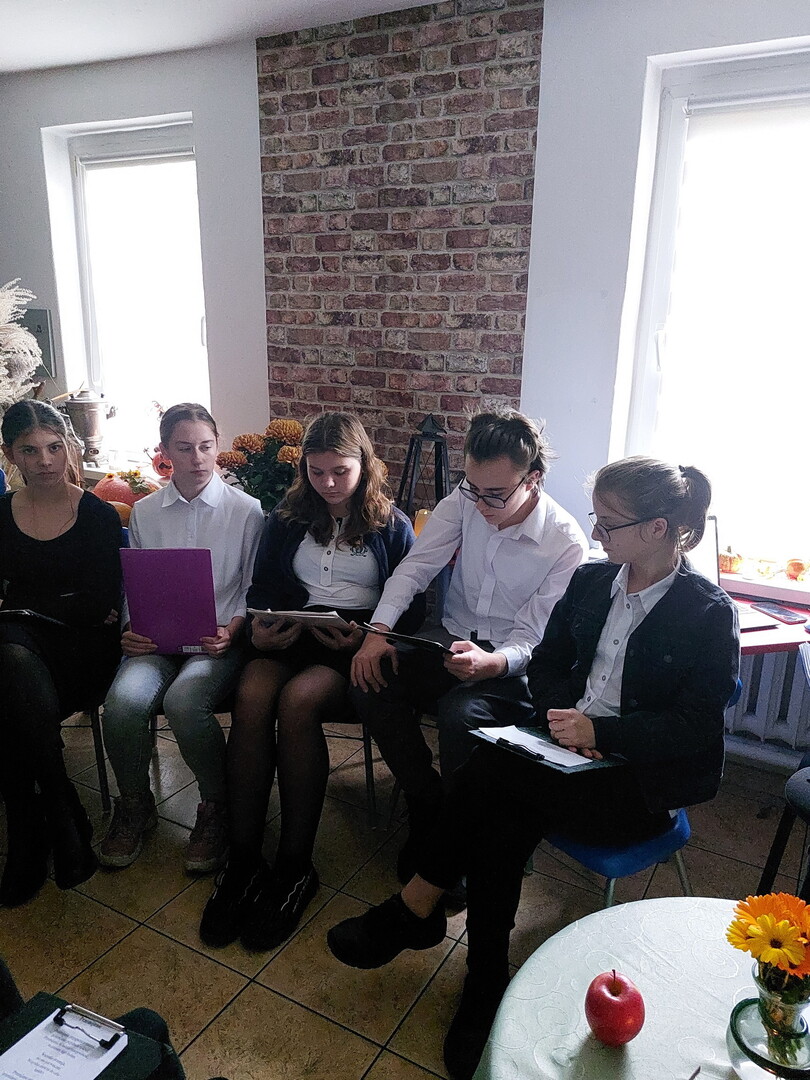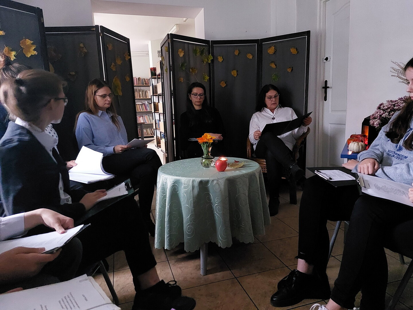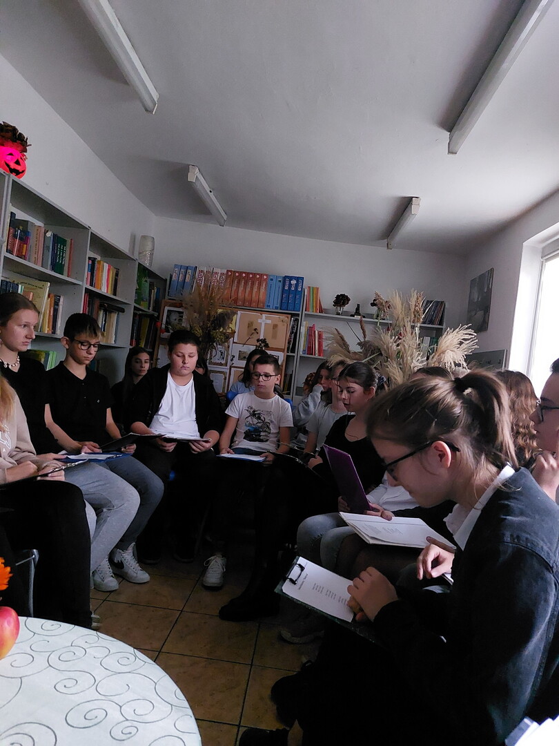 Późnym popołudniem 31 października w czytelni biblioteki szkolnej odbyły się Zaduszki literackie .