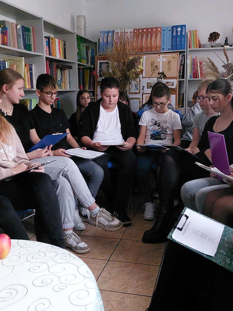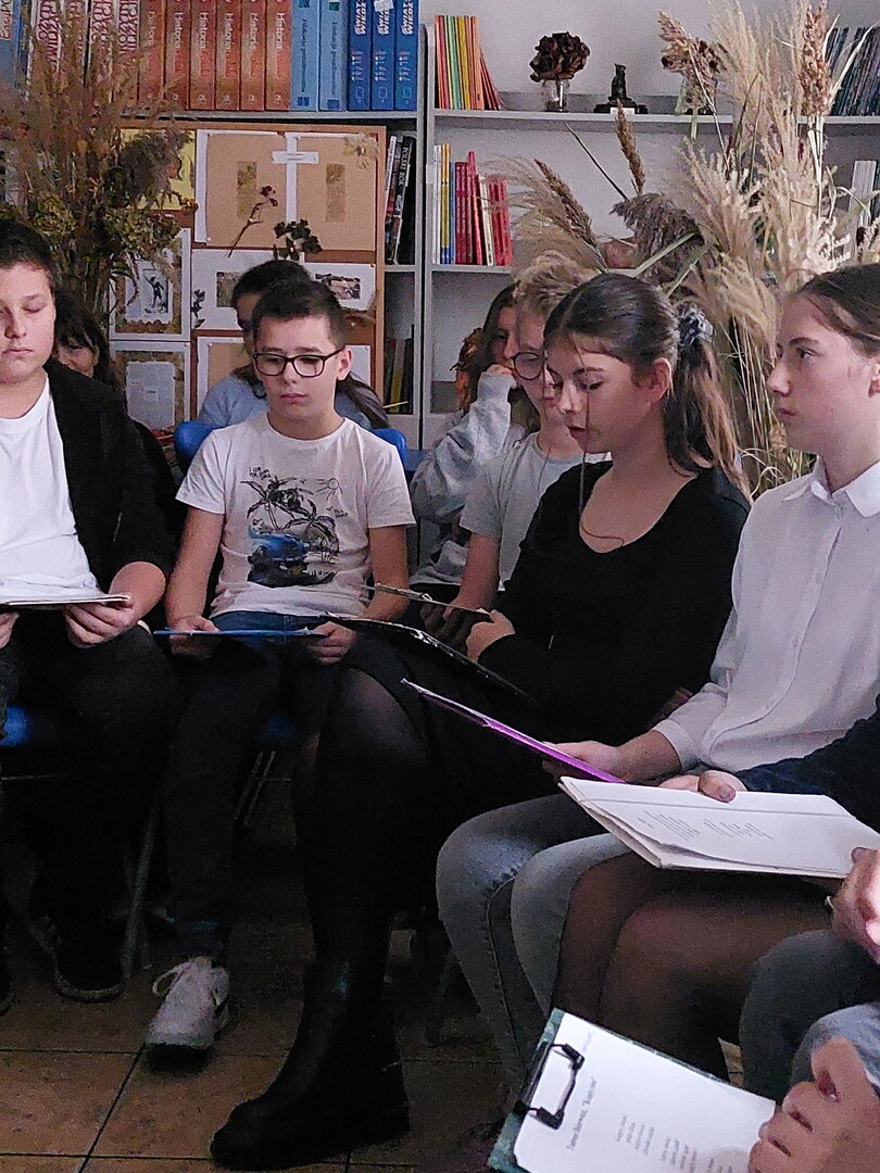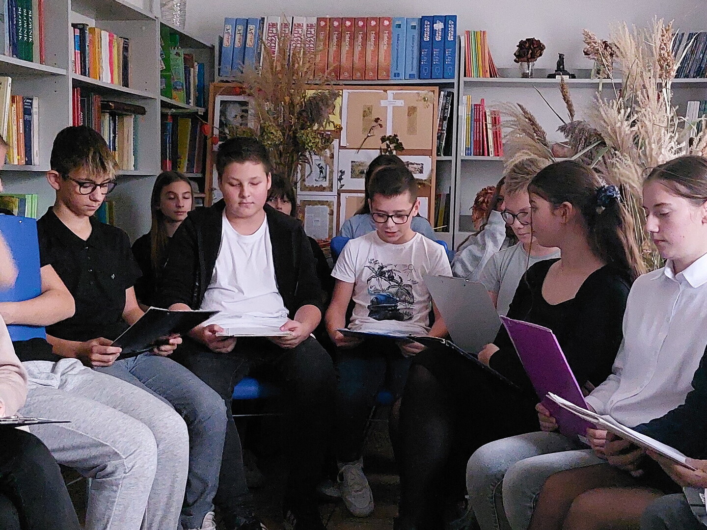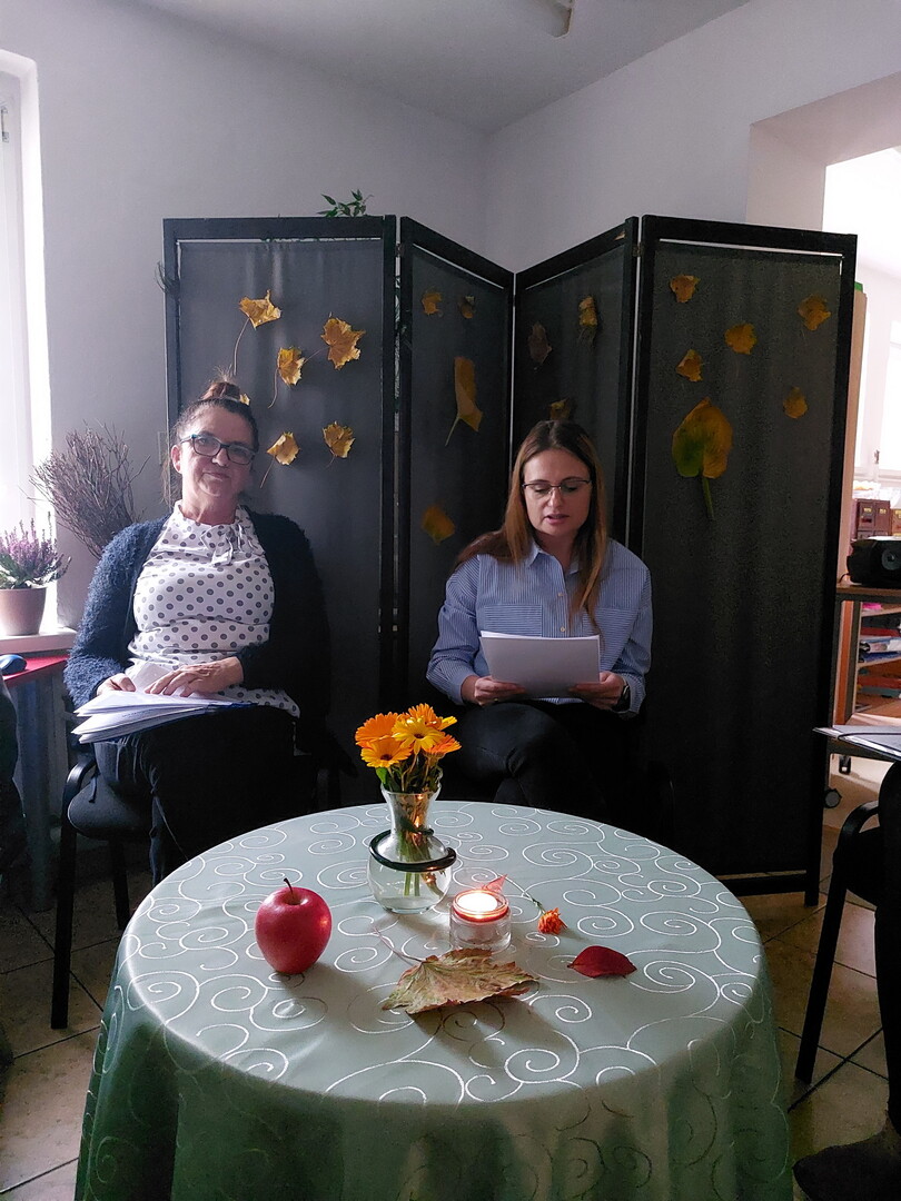 Późnym popołudniem 31 października w czytelni biblioteki szkolnej odbyły się Zaduszki literackie .