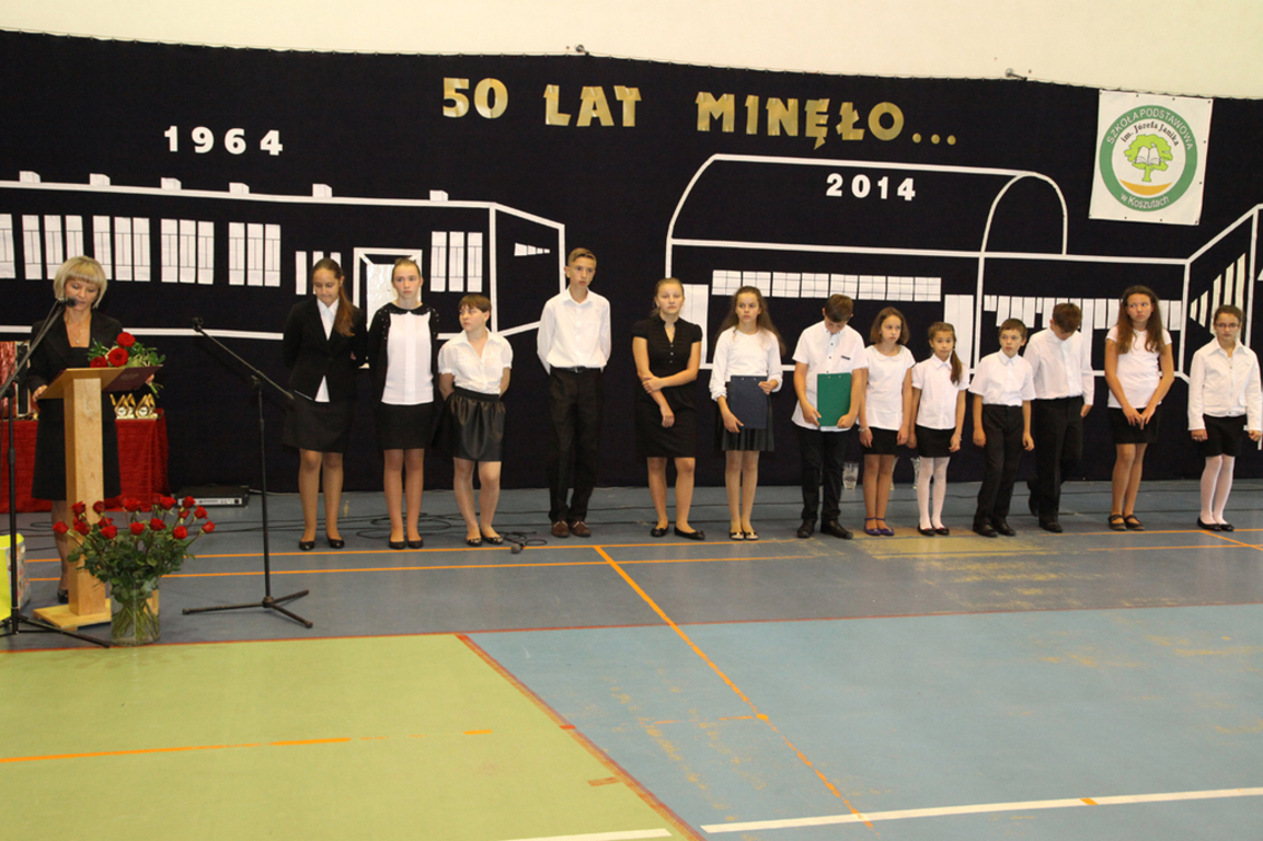W przemówieniu Dyrektor Szkoły powiedziała między innymi: „ 50 lat jubileuszu szkoły – to wiele chwil zapisanych w sercach i pamięci, dla każdego z nas zapisanych inaczej. Jest to wartość bezcenna, bo to przeżycia, emocje, wzruszenia na trwałe zapisują się w ludzkiej pamięci i pozostają w naszych wspomnieniach”.
