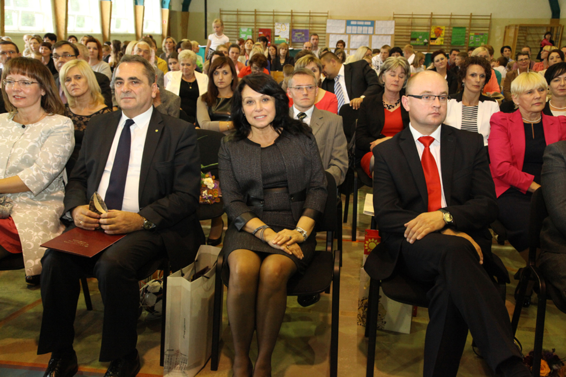 Pani Dyrektor w swym wystąpieniu nawiązała do historii szkoły, rozwoju oświaty na naszym terenie. Przypomniała nazwiska dyrektorów: p. Marii Leońskiej, p. Mariana Frydrychowicza, p. Michała Kubiak, p. Józefa Frydrychowicza, p. Jadwigi Tyl, wyrażając uznanie dla ich pracy. Spośród byłych dyrektorów uroczystość zaszczycił swoja obecnością p. Józef Frydrychowicz . Pani Dyrektor wspomniała dawnych nauczycieli, wyraziła podziękowania rodzicom, którzy działali na rzecz dobra szkoły i dzieci na przestrzeni ostatnich lat.