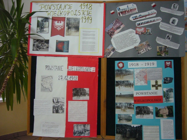 Powstanie Wielkopolskie to jedyne w historii Polski powstanie, które zakończyło się sukcesem. Wybuchło w Poznaniu 27.12.1918r., jego celem było uwolnienie Wielkopolski i Pomorza spod władzy niemieckiej. Oddziałąmi polskimi dowodzili: major S. Taczak i generał J. Dowbór-Muśnicki. Walki powstańcze trwaly do lutego 1919r. Dla nas, wielkopolan, to niezwykle ważne wydarzenie historyczne. Pamieć o nim kultywują uczniowie SP w Koszutach. W tym roku klasa VI przygotowała w ramach lekcji historii ciekawe plakaty, które wyeksponowano noa holu. Kazdy z uczniów może zapoznać się z historią Powstania Wielkopolskiego.