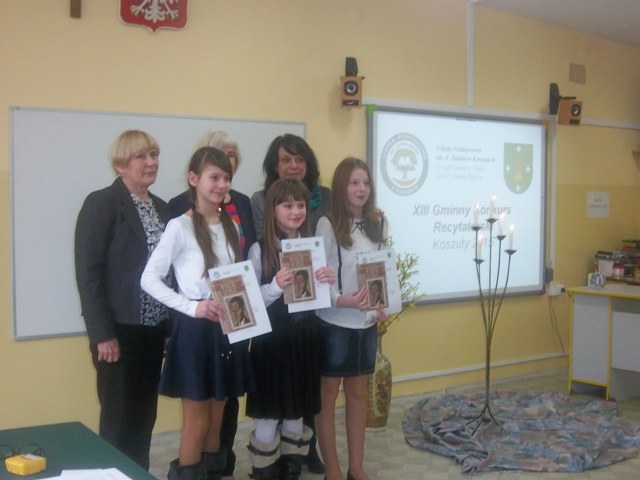 Jury pod przewodnictwem Dyrektora Szkoły Podstawowej w Koszutach - mgr Aldony Dranikowskiej, Dyrektora SASi P Gminy Słupca pani Ewy Romańskiej, pani Seweryny Lewandowskiej – Dyrektora Miejskiej i Powiatowej Biblioteki w Słupcy oraz pani Katarzyny Rybickiej, uwzględniając następujące kryteria: dobór repertuaru, interpretacja tekstu, kultura słowa, ogólny wyraz artystyczny oceniła artystów. Uczennica naszej szkoły Ewa W. z klasy IV zajęła II miejsce.