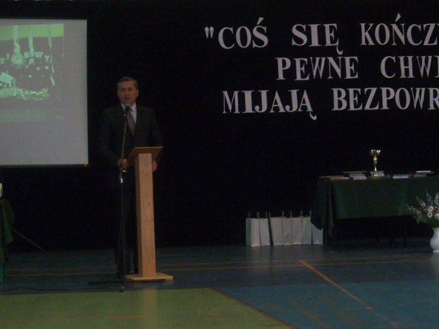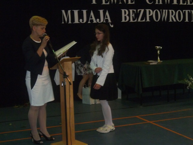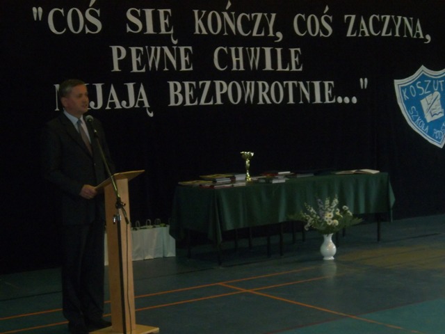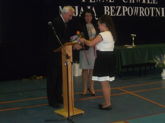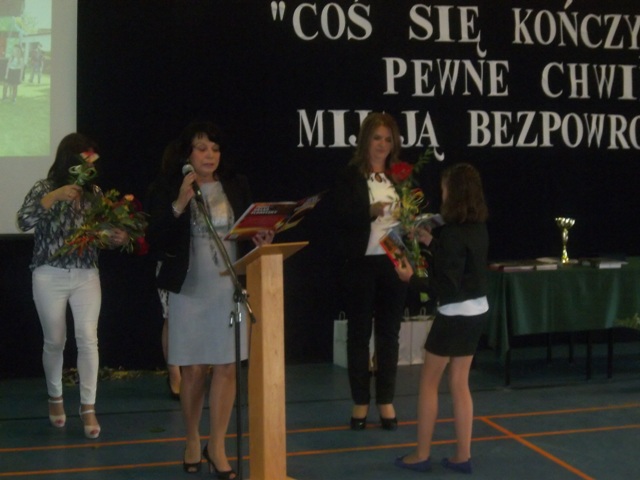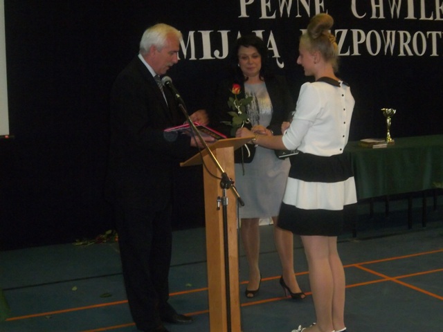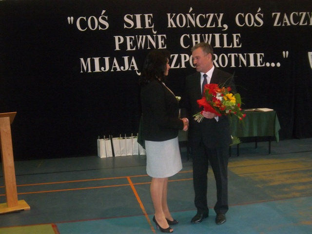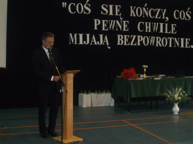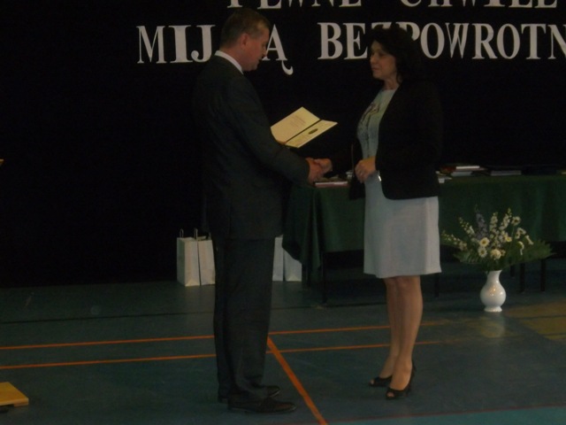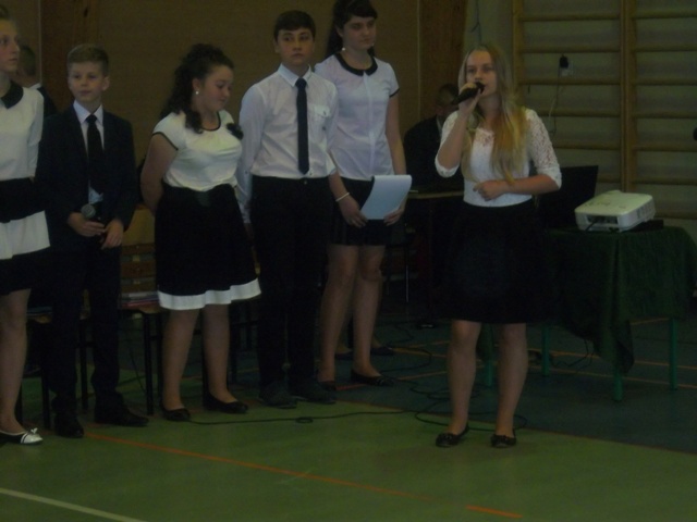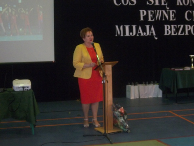 Po wprowadzeniu sztandaru i odśpiewaniu hymnu narodowego Pani Dyrektor mgr Aldona Dranikowska, w swoim przemówieniu przedstawiła zgromadzonym rodzicom oraz gościom tegoroczne sukcesy uczniów. Z podziękowaniem za trud włożony w kształcenie i wychowanie młodzieży zwróciła się zarówno do nauczycieli, jak i ich rodziców, dziękując im za wsparcie i zaangażowanie.