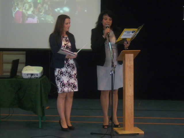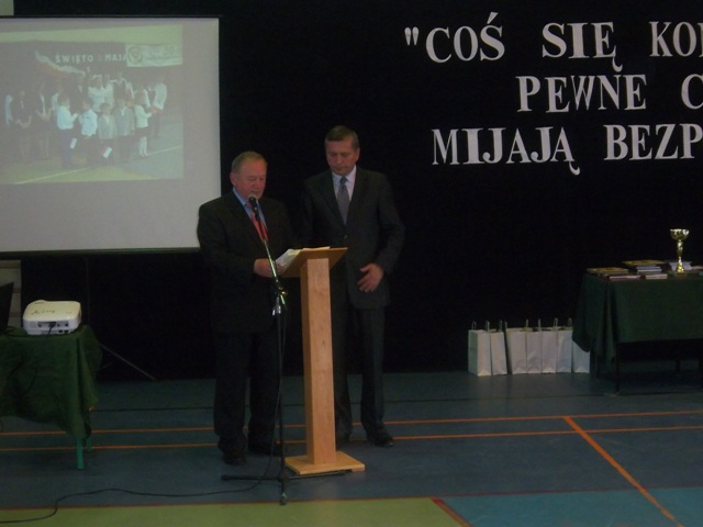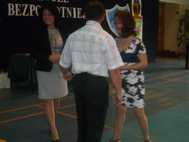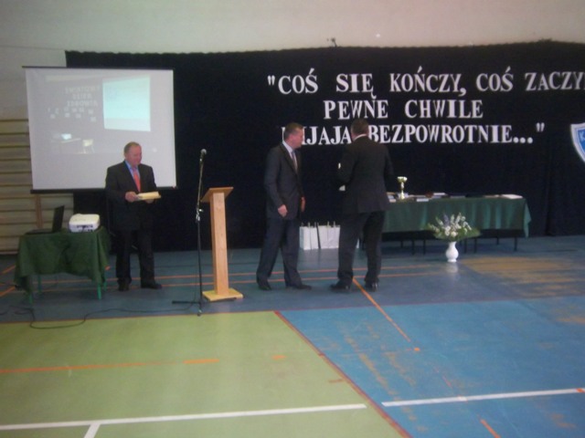 Poseł Tadeusz Tomaszewski wręczył Dyrektor Szkoły Złotą Odznakę Honorową Zrzeszenia Ludowych Zespołów Sportowych, którą nadano szkole w dowód uznania za wieloletnią działalność na rzecz upowszechniania kultury fizycznej i wysokie osiągnięcia sportowe.