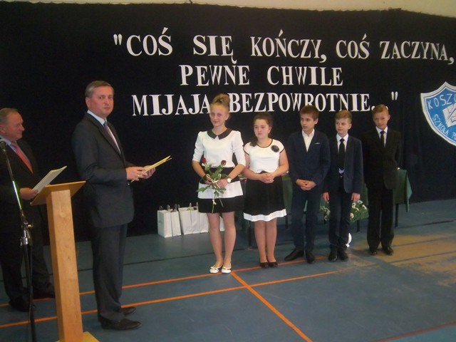 26 czerwca 2015 roku. Uroczystość zakończenia roku szkolnego 2014/2015 w naszej szkole tradycyjnie rozpoczęła się mszą św. o godz. 8.00 w Kościele parafialnym pw. Św. Bartłomieja w Koszutach. Następnie wszyscy zgromadzeni udali się do szkoły, gdzie nastąpił dalszy ciąg uroczystości. Swoją obecnością zaszczycili: Poseł na Sejm RP Tadeusz Tomaszewski, Pan Henryk Janiak, Wicewójt Gminy Słupca Pan Karol Kujawa, Pan Marek Woźniak Prezes UKS JUNIOR w Koszutach, Pani Bożena Dzwoniarska kierownik KRUS w Słupcy oraz Pan Grzegorz Wilczyński z KRUS, ks. Ksawery Wilczyński, Przewodniczący Rady Rodziców Pan Przemysław Kwiatkowski.