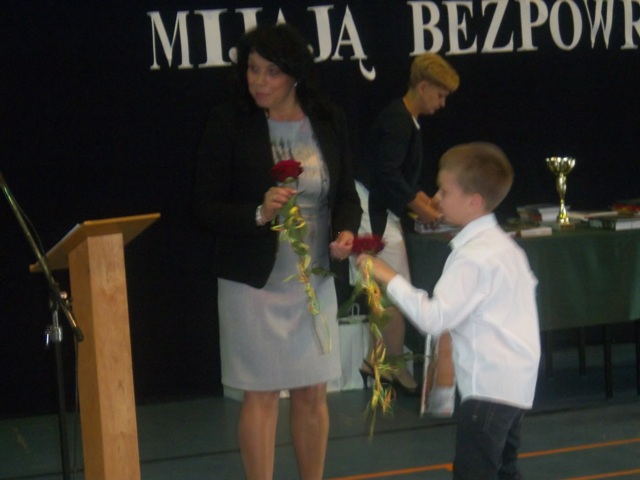 Miłym akcentem uroczystości był moment, kiedy uczniowie klasy VI złożyli podziękowania Pani Dyrektor, nauczycielom i wychowawcom, wręczając kwiaty, jako wyraz swojej wdzięczności.