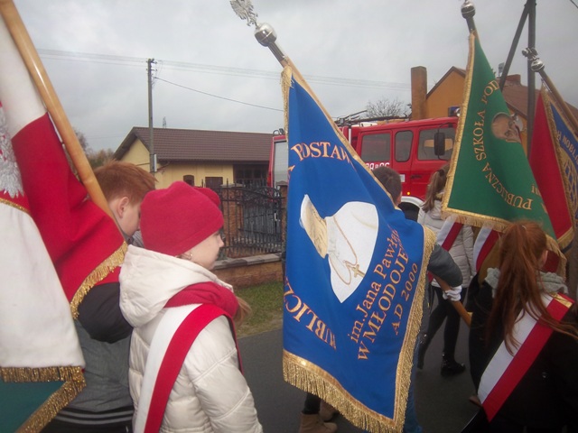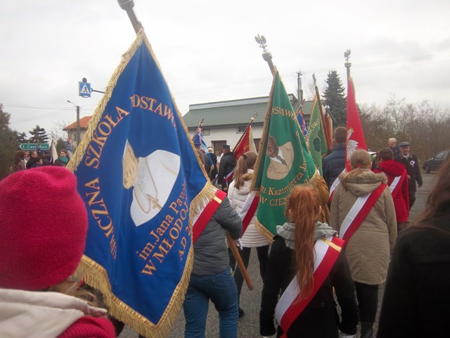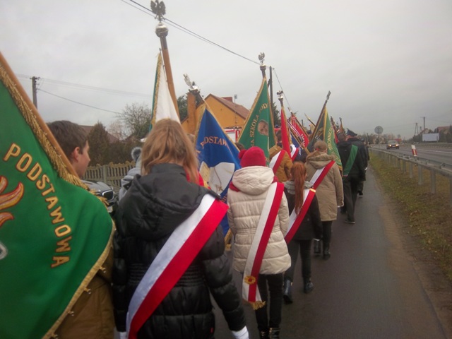 W dniu 11 listopada w Cieninie Kościelnym odbyły się Gminne Obchody Narodowego Święta Niepodległości. W uroczystościach tych uczestniczyła również delegacja z naszej szkoły z Pocztem Sztandarowym. Szkołę reprezentowali przedstawiciele Samorządu Uczniowskiego wraz z opiekunami: p. J. Tomczak oraz p. Anną Filipiec. W uroczystości uczestniczyli: władze Gminy Słupca z panem Wicewójt Gminy Słupca Karolem Kujawą, delegacje i poczty sztandarowe szkół, kombatanci oraz jednostki OSP z terenu Gminy Słupca. Delegacje złożyły kwiaty i oddano hołd poległym żołnierzom pod pomnikiem Bohaterów Września 1939r. w Wilcznej.