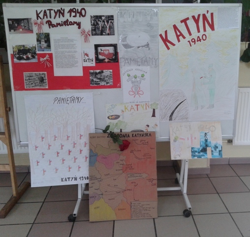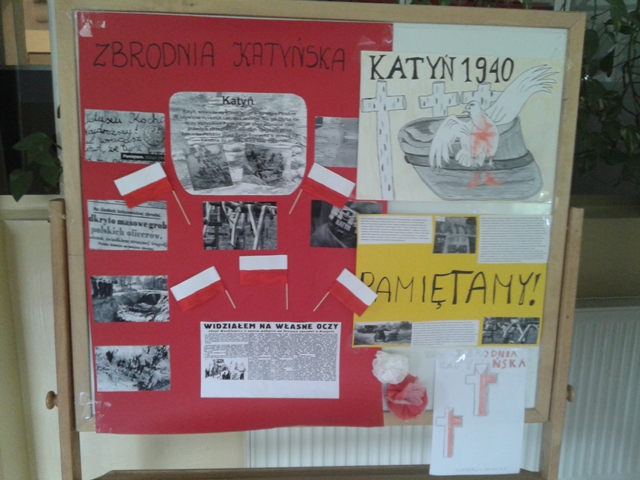 a uczniowie starszych klas opracowali plakaty i albumy poświęcone katyńskiej zbrodni.