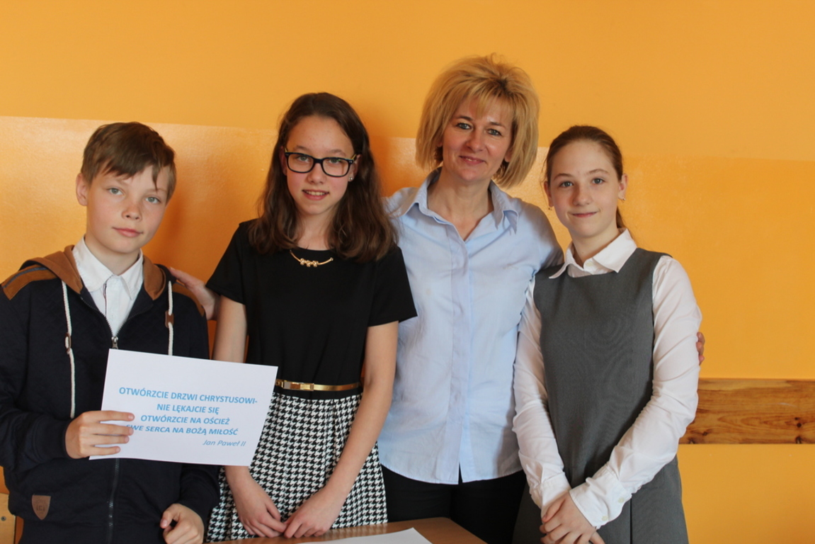Kolejny raz wzięliśmy udziała w Konkursie. Naszą szkołę reprezentowali: Zuzanna Kukulska, Wiktoria Krych i Daniel Domiński. Wszystkie Szkoły reprezentowały bardzo wysoki poziom. Konkurs odbył się w trzech etapach: recytacja tekstu z Pisma Świętego, sprawdzian ustny wiedzy o św. Janie Pawle II i narysowanie i pomalowanie plakatu. Zajęliśmy II miejsce.
