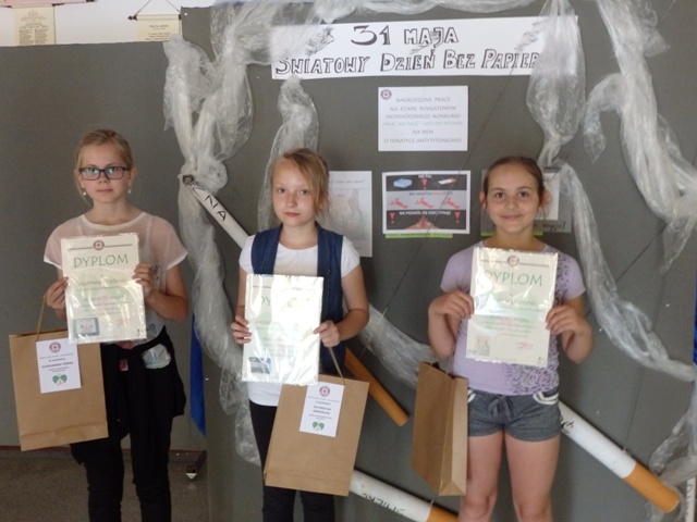 Etap szkolny odbył się w marcu. Wśród uczniów klasy V komisja w skład , której weszli: Dyrektor Szkoły Pani Aldona Dranikowska oraz Panie: Arleta Krysińska i Wiesława Frydrychowicz wybrała pracę Aleksandry Górnej. Praca została przekazana do Państwowego Powiatowego Inspektoratu Epidemiologicznego w Słupcy i wzięła udział w etapie powiatowym. Komisja przyznała Oli III miejsce. Ola została nagrodzona 23 maja 2016r. podczas Obchodów Światowego Dnia bez Tytoniu w Słupcy. Uczennica wraz z opiekunem panią Arletą Krysińską wzięła udział w przemarszu antynikotynowym ulicami miasta.