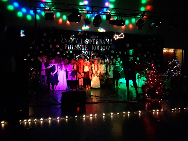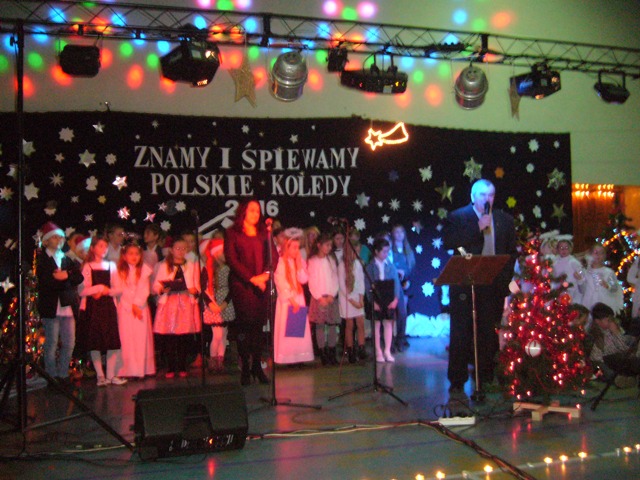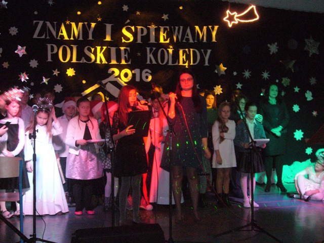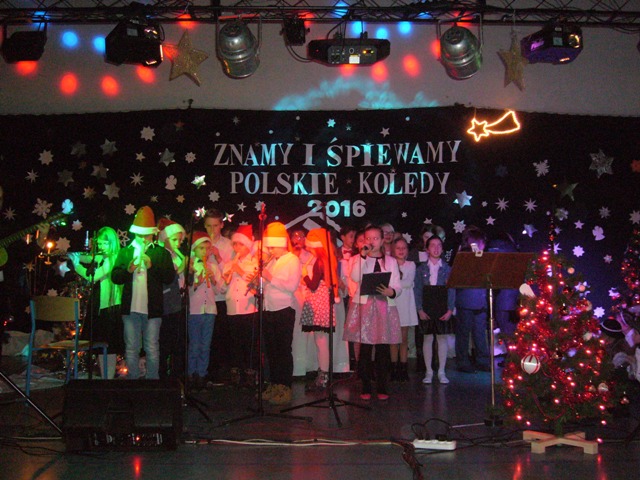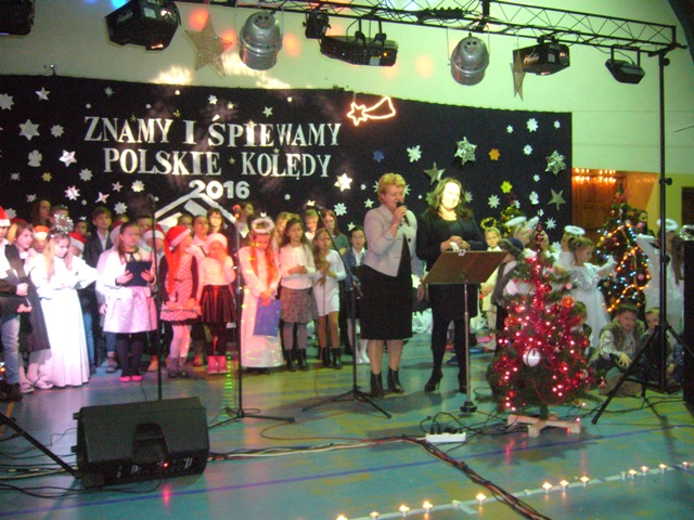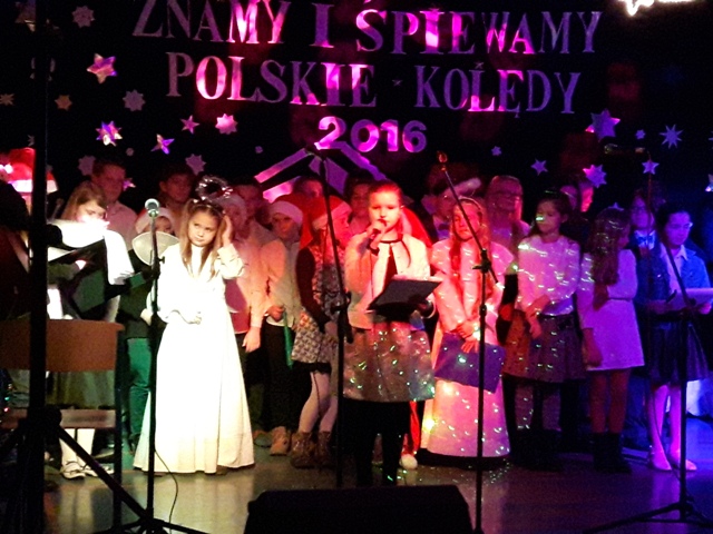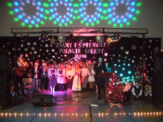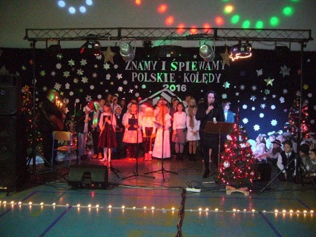 15.12.2016r. „Znamy i śpiewamy polskie kolędy 2016” to spotkanie w ramach projektu edukacyjnego autorstwa Dyrektora Szkoły mgr Aldony Dranikowskiej, które odbyło się w naszej szkole po raz drugi. Dźwięk pięknych polskich kolęd, wystrój świąteczny, blask lampek choinkowych i świec to sceneria, która zachwyciła na wejściu.