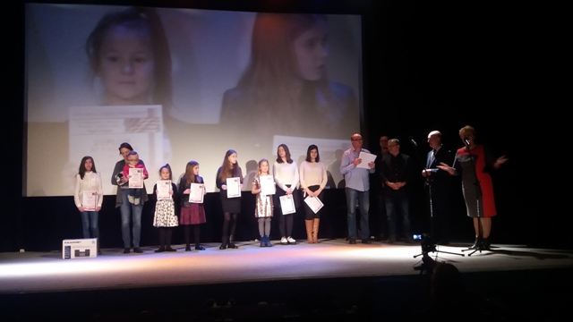 W dniu 13.01.2017r. w Miejskim Domu Kultury w Słupcy odbył się XII Regionalny Festiwal Piosenki Anglojęzycznej ,,English Singing” . Po przejściu wcześniejszych kwalifikacji w finałowym koncercie zaprezentowało się 20 wykonawców w trzech kategoriach wiekowych. Komisja konkursowa w skład której weszli: Pan Bartosz Wolski, Pan Robert Witowski i Pan Piotr Górny nagrodziła trzech najlepszych wykonawców z każdej kategorii. Naszą szkołę reprezentowała Adrianna Nowak- uczennica klasy VI, która zaśpiewała piosenkę ,, 7 Years” Lukasa Grahama. Adrianna swym występem zachwyciła jurorów, którzy uznali jej występ za najlepszy w kategorii szkół podstawowych. Uczennica otrzymała dyplom za zdobycie I miejsca oraz nagrodę – nowoczesną wieżę. Honorowy patronat nad imprezą objęli oraz nagrody ufundowali wójt Gminy Słupca Pani Grażyna Kazuś, burmistrz Słupcy Pan Michał Pyrzyk oraz starosta Pan Mariusz Roga. Dziękujemy!