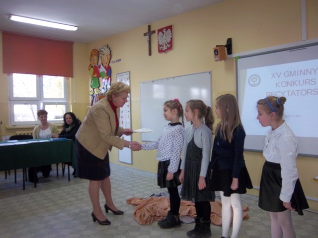 Organizatorzy przygotowali również podziękowania dla szkół za udział w XV Gminnym Konkursie Recytatorskim. Podziękowania wręczono także opiekunom recytatorów, którzy przygotowali ich do konkursu.