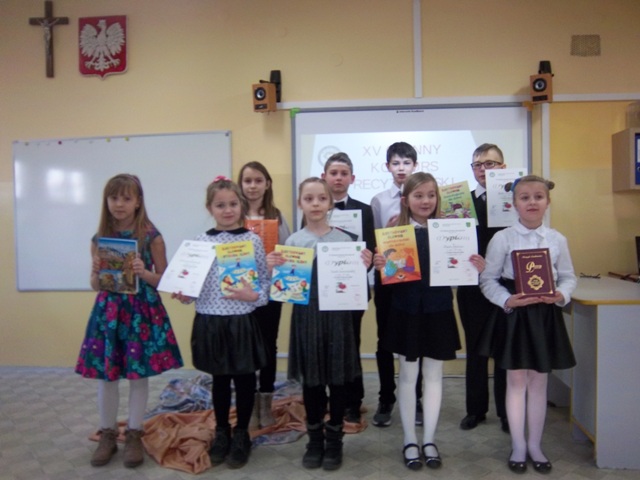 Wszystkich uczestników konkursu nagrodzono dyplomami. Laureaci poszczególnych kategorii otrzymali nagrody książkowe i dyplomy. Dla uczestników konkursu organizatorzy przygotowali ciastko i herbatę, natomiast komisja i opiekunowie zostali zaproszeni do kawiarenki na słodki poczęstunek.