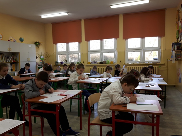 W dniu 16 marca 2017r. uczniowie naszej szkoły wzięli udział w Międzynarodowym Konkursie Matematycznym Kangur, w trzech kategoriach. Kategoria Żaczek, kl. II - 12 uczniów, kategoria Maluch kl. III i IV - 10 uczniów, kategoria Beniamin kl. V i VI - 7 uczniów. Uczniowie rozwiązywali test skąłdający się z zadań zamkniętych.