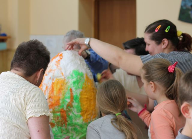 W dniu 03.04.2017r. uczniowie klasy IV uczestniczyli w warsztatach ozdób wielkanocnych w Środowiskowym Domu Samopomocy w Lucynowie. Celem spotkania było kształtowanie umiejętności działania zespołowego, otwartości, postawy szacunku i tolerancji wobec drugiego człowieka oraz rozwijanie empatii. Uczniowie mieli możliwość wykorzystywania własnych umiejętności i doświadczeń oraz dzielenia się nimi. W ramach warsztatów uczniowie wypracowali kartki wielkanocne oraz piękne "jajo" wielkanocne. Staramy się, aby uczniowie w naszej szkole byli pełni pasji i zaangażowania, kierowali się wrażliwością i troską o drugiego człowieka.
