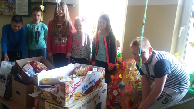 Uczniowie naszej szkoły stanęli na wysokości zadania, gdyż uzbierali łącznie 71 kg produktów spożywczych.