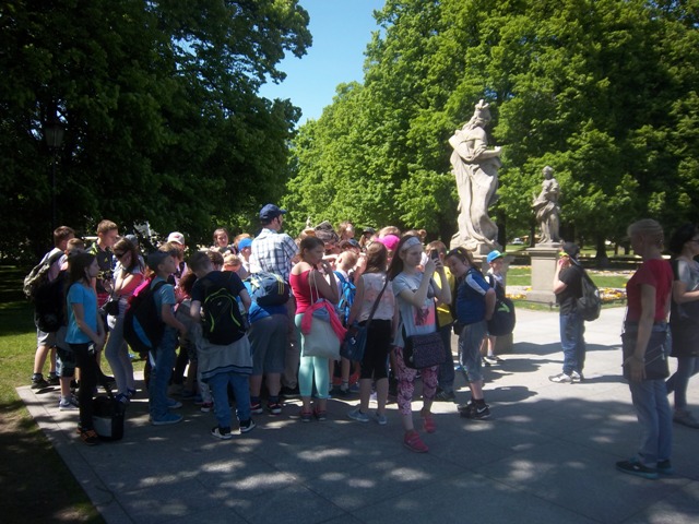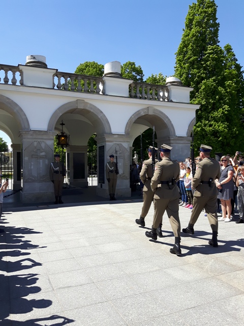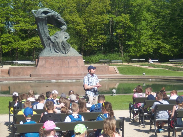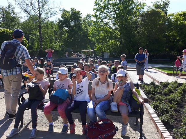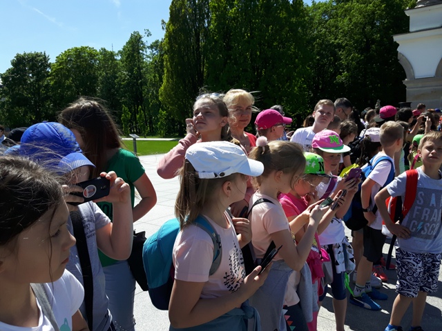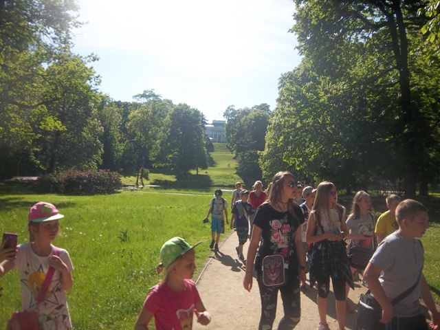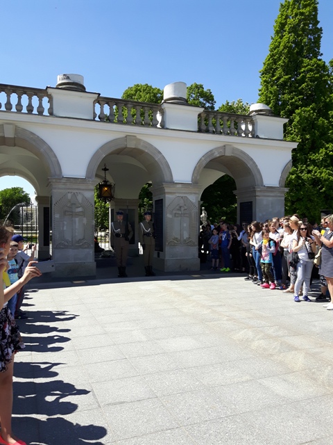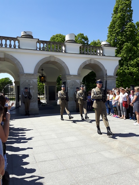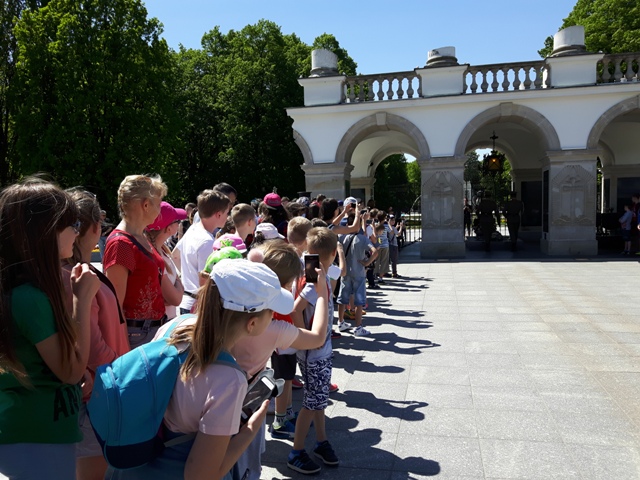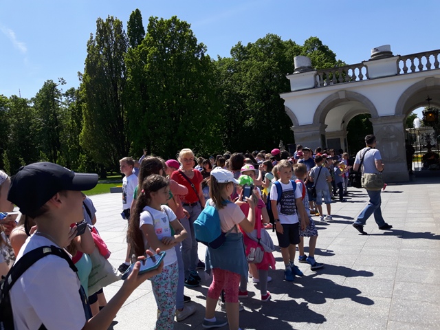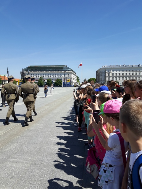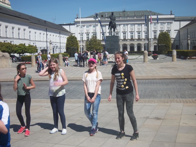 Zobaczyliśmy i zwiedziliśmy z przewodnikiem najciekawsze miejsca w stolicy. Na samym początku naszej wycieczki podziwialiśmy wspaniałą panoramę Warszawy z ogrodów na dachu Biblioteki Uniwersytetu Warszawskiego. Następnie byliśmy świadkami zmiany warty przy grobie Nieznanego Żołnierza. W bezpośrednim sąsiedztwie Grobu Nieznanego Żołnierza napotkaliśmy jedną z 15 multimedialnych „Ławeczek Chopina” .Wykonane z polerowanego czarnego kamienia ławki zostały zamontowane w związku z obchodami 200 rocznicy urodzin kompozytora. Imponującym tłem dla ławeczki jest Fontanna Wielka. Następnie spacerując po Krakowskim Przedmieściu widzieliśmy Pałac Prezydencki, pomnik Adama Mickiewicza oraz pomnik Mikołaja Kopernika . Następnie weszliśmy na Plac Zamkowy, pośrodku którego wznosi się Kolumna Zygmunta III Wazy- najwyższy i najstarszy pomnik stolicy. Przy placu znajduje się też Zamek Królewski, zbudowany w XV wieku- dawna rezydencja polskich władców. Następnie przeszliśmy na Rynek Starego Miasta, czyli prostokątny plac z którego wychodzi osiem ulic, otoczony kolorowymi kamieniczkami. W samym centrum zobaczyliśmy pomnik Syrenki otoczony fontanną. Kolejnym punktem naszej wycieczki były Łazienki Królewskie- jedno z najpiękniejszych miejsc w Warszawie. Zobaczyliśmy Pomnik Fryderyka Chopina, piękny Pałac na Wyspie i Pomarańczarnię. Na tym nasza wycieczka dobiegła końca. Szczęśliwi, pełni fantastycznych wrażeń i emocji wróciliśmy do domu.