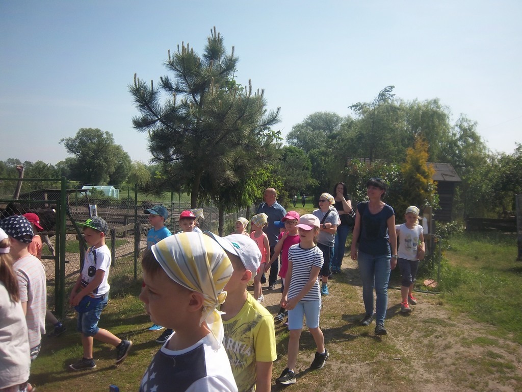 Dnia 30 maja 2017r. dzieci z oddziału przedszkolnego i edukacji wczesnoszkolnej pod opieką swoich wychowawców wyjechały do Gospodarstwa Agroturystycznego "Ania i Filip" w Izabelinie. Wycieczka miała charakter edukacyjny. Uczniowie zwiedzili Zwierzyniec, w którym znajdowały się daniele, dziki, kozy, owce, bażanty, kaczki, kury, strusie. Znajdujące się przy Zwierzyńcu Muzeum Przyrodnicze obfituje w ciekawe okazy zwierząt z różnych kontynentów. Wielką ciekawością cieszyło się pomieszczenie z inkubatorem. Dzieci śledziły narodziny młodych ptaków. Najwięcej emocji budziły świeżo wyklute pisklęta. W czasie wolnym uczniowie wesoło bawili się na placu zabaw.