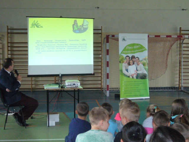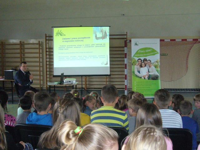 14.06.2017r. wszyscy uczniowie uczestniczyli z spotkaniu z przedstawicielem Kasy Rolniczego Ubezpieczenia Społecznego. Przedstawiciel przeprowadził pogadankę na temat bezpieczeństwa podczas pracy w gospodarstwie rolnym, ze szczególnym uwzględnieniem zapobiegania wypadkom z udziałem zwierząt gospodarskich i maszyn rolniczych.