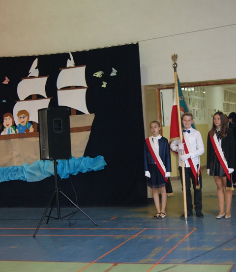 Uroczyste spotkanie umilili nam szkolni artyści: Julka, Ada i Fabian. W ich wykonaniu usłyszeliśmy piosenki: ,, Moja muzyka”, ,,Ale to już było” oraz ,,Plecak na plecach”.