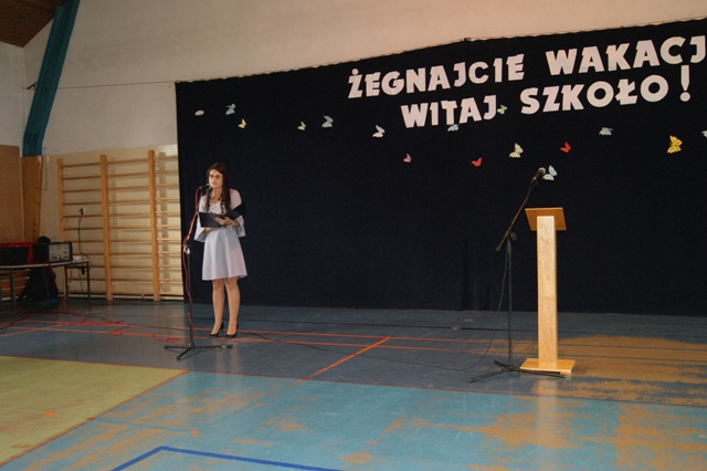 Życzenia dla uczniów i nauczycieli w nowym roku szkolnym złożyła również Przewodnicząca Rady Rodziców-Pani Karolina Tylisz.