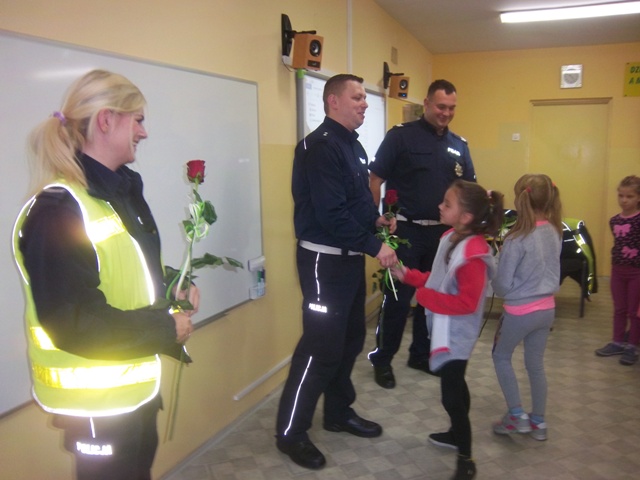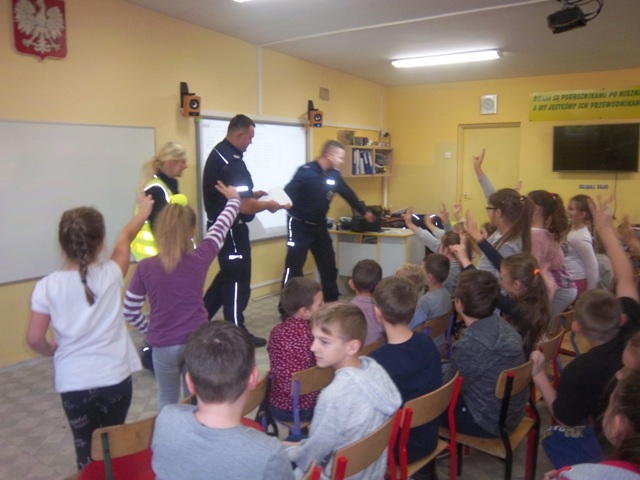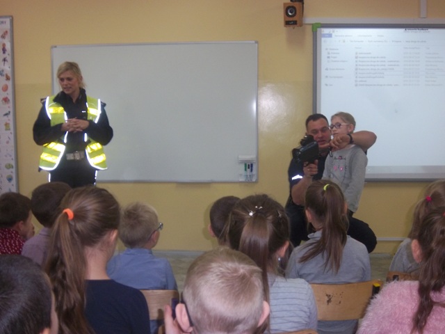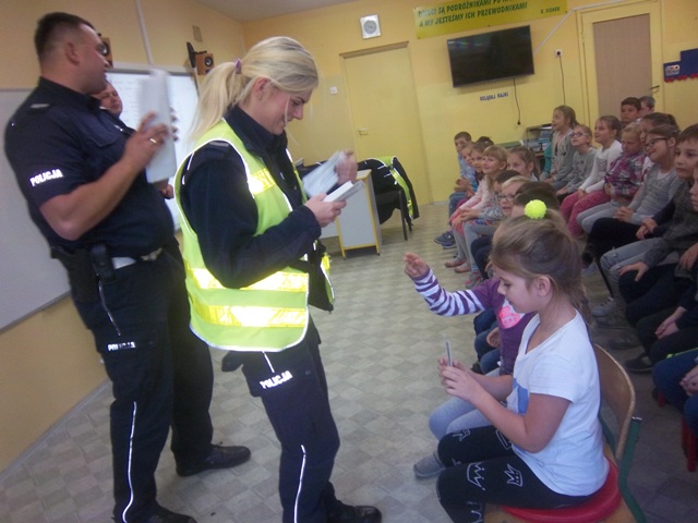 Policjanci uczulili także uczniów, aby zawsze pamiętali o zapinaniu pasów podczas podróży samochodem. Przypomnieli, że przywilej jazdy na przednim siedzeniu samochodu dotyczy tylko tych, którzy mają wzrost od 150cm ( nie dotyczy dzieci przewożonych w fotelikach lub urządzeniach podtrzymujących). Ponadto podkreślili jak ważną rolę pełnią elementy odblaskowe, które każdy uczeń powinien nosić.