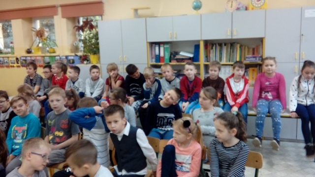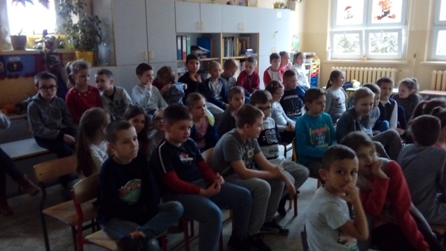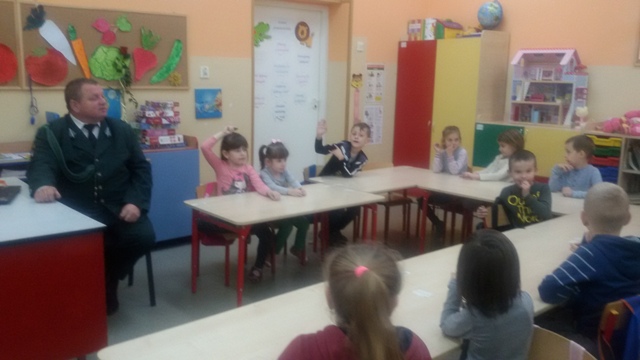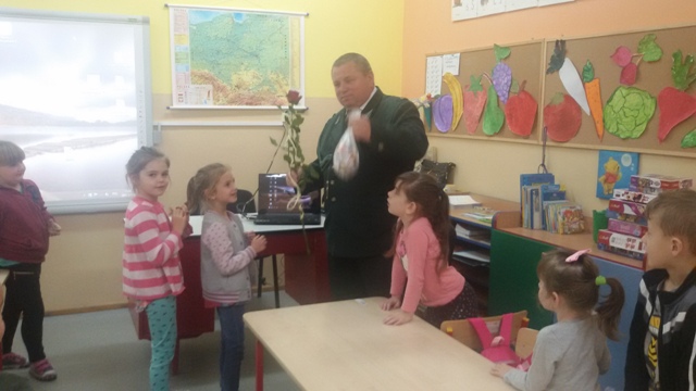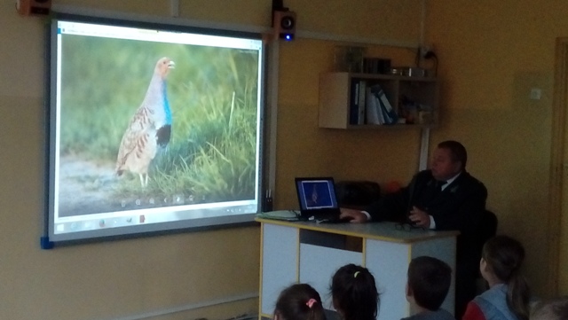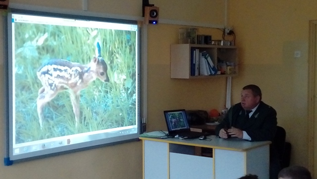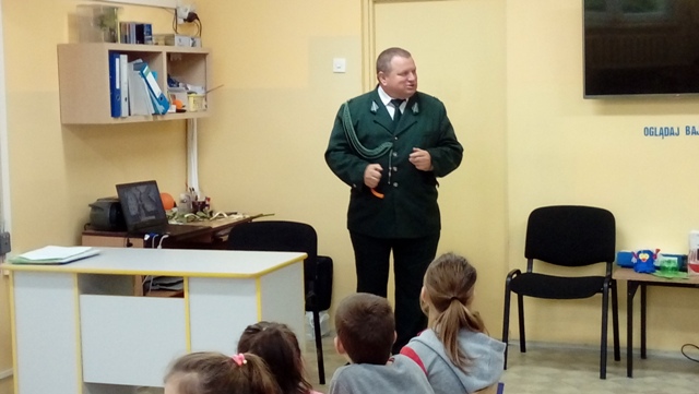 Dnia 9. 11. 2017 r. do naszej szkoły został zaproszony myśliwy. Spotkał się on najpierw z dziećmi oddziału przedszkolnego a następnie z uczniami klas II i III. Opowiedział uczniom czym się zajmuje i na czym polega jego praca. Uczniowie obejrzeli prezentację poszerzając swoje wiadomości z zakresu przyrody. Opowieści ze świata zwierząt zaciekawiły wszystkich. Dzieci podziękowały gościowi wręczając symboliczny kwiatek. Myśliwy obdarował wszystkich cukierkami. Mamy nadzieję, że współpraca z myśliwym przyczyni się do pogłębienia wiedzy. LICZYMY NA DZLSZĄ WSPÓŁPRACĘ.
