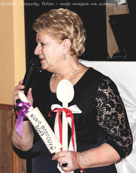 Nastąpiła również uroczysta inauguracja Stowarzyszenia Koła Gospodyń Wiejskich, którego dokonała Pani Wójt wręczając symbol władzy: kopyść i wałek dla Przewodniczącej Stowarzyszenia- Pani Aliny Maciaszek.