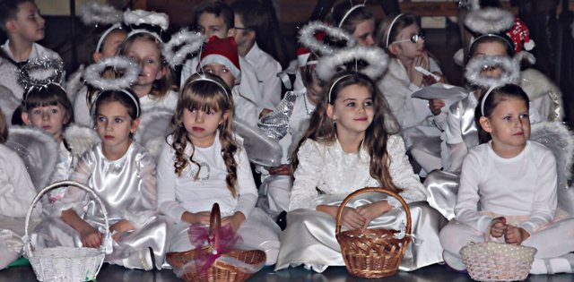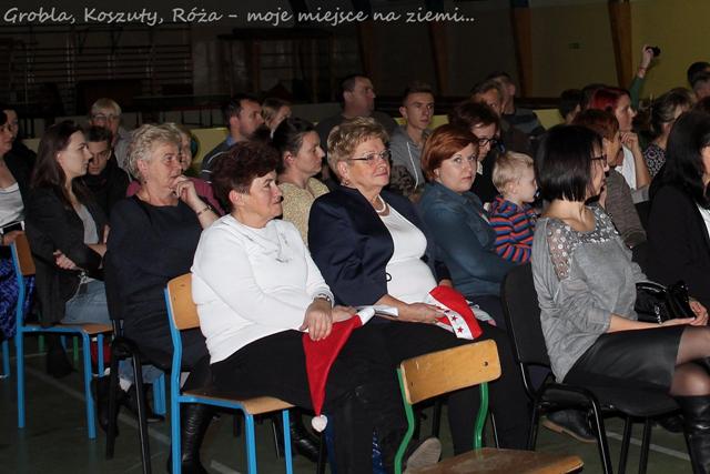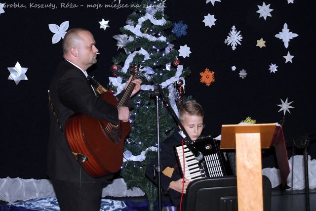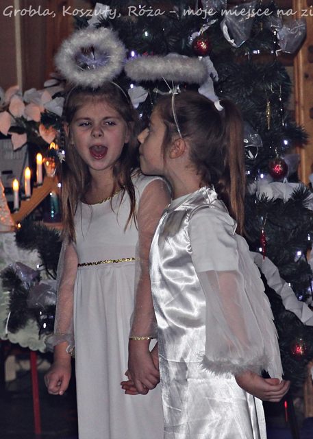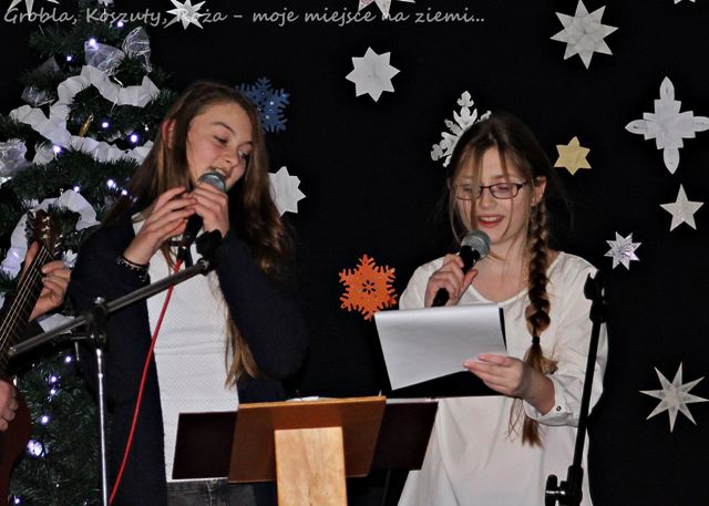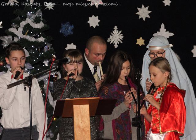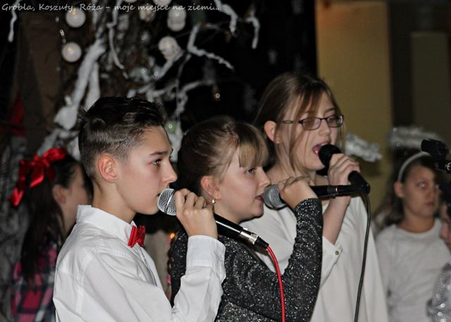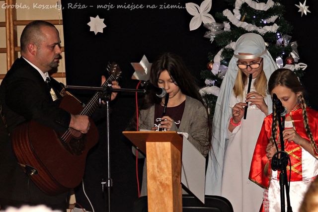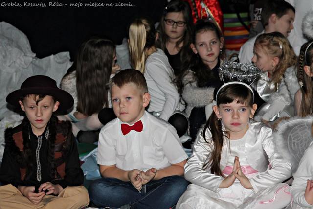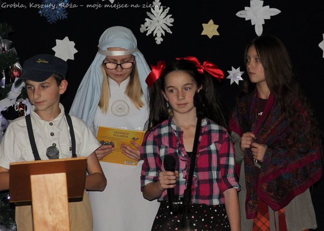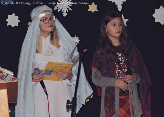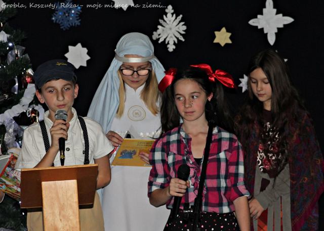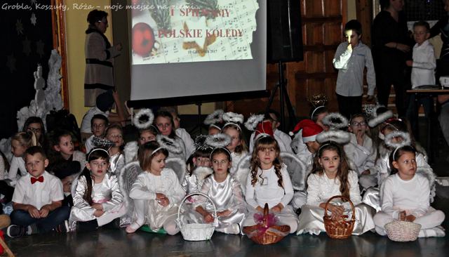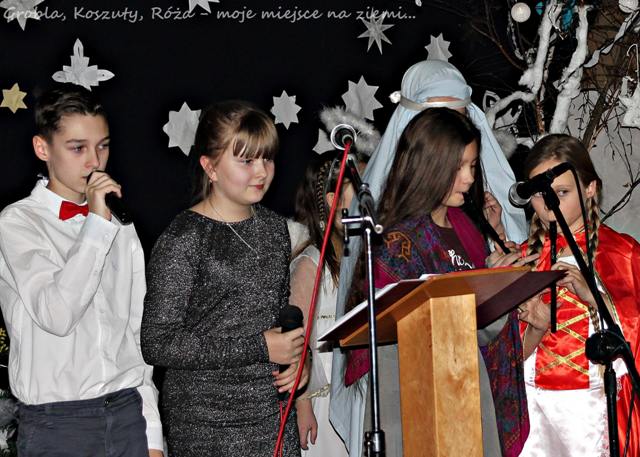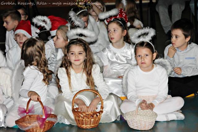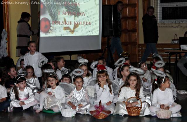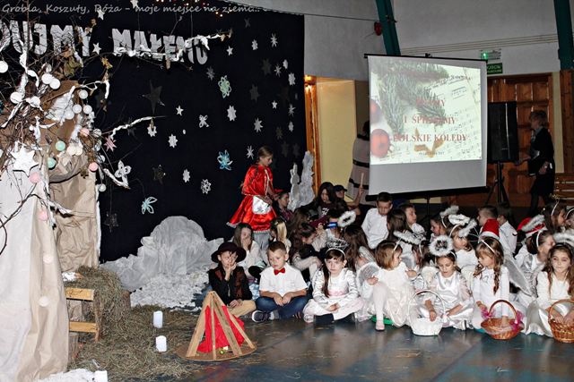 19.12.2017 r. sala gimnastyczna naszej szkoły wyglądała zupełnie inaczej. Piękna bożonarodzeniowa sceneria wprowadziła nas w niezwykły nastrój. Spotkaliśmy się tam wszyscy- Pani Dyrektor, nauczyciele, najmłodsi koledzy i koleżanki. Zagościli u nas nasi rodzice, babcie, dziadkowie, najbliżsi oraz znajomi. Każdy przyszedł tutaj, aby pokolędować Małemu. Tak się stało, bo śpiew kolęd było słychać wszędzie. To sprawiło, że wszystko może się zdarzyć. Do szopki przybyli- aniołowie, pasterze, ale także Dziewczynka z zapałkami, Czerwony Kapturek, Jaś i Małgosia oraz Pinokio. Ten świąteczny nastrój udzielił się każdemu. Na koniec Panie z Koła Gospodyń Wiejskich w Koszutach zaśpiewały przepiękną kolędę ,,Wśród nocnej ciszy”.