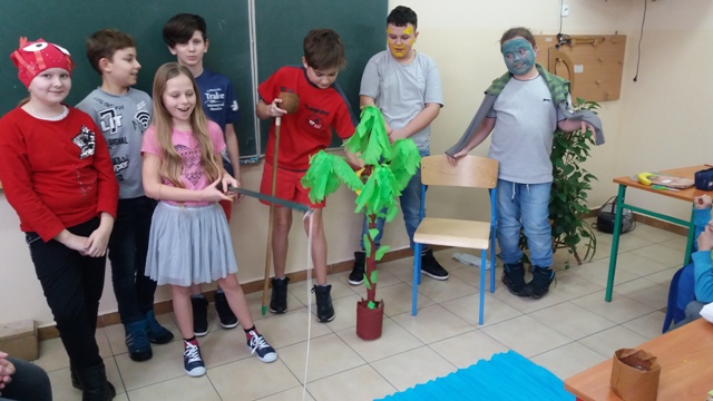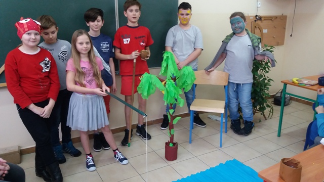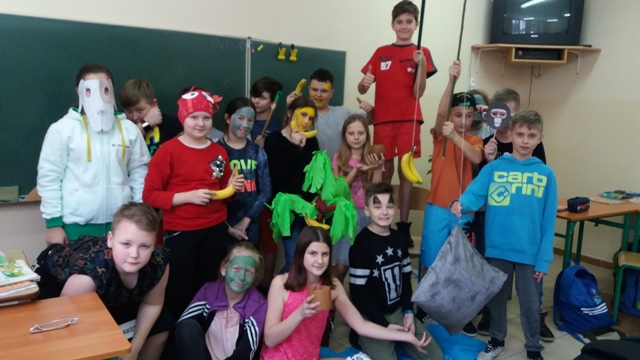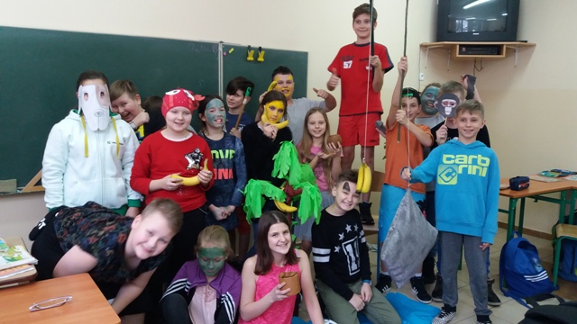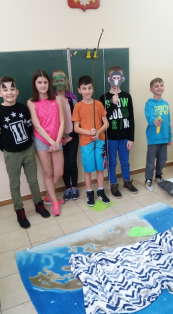 Dnia 17.01.2018r. uczniowie klasy V odegrali scenki przygotowane na podstawie historyjki obrazkowej z serii "Adventure Island". Jest to cykl zabawnych opowiastek znajdujących się na końcu każdego działu podręcznika "Discover English 2". Ich celem jest zachęcenie uczniów do nauki języka angielskiego poprzez świetną zabawę. Uczniowie zostali podzieleni na 3 grupy. W każdej z nich został wybrany kapitan, który nadzorował pracę zespołu. Uczniowie i tym razem poradzili sobie znakomicie, wcielając się w postaci z historyjki dotyczącej życia na tajemniczej wyspie.