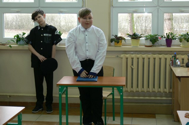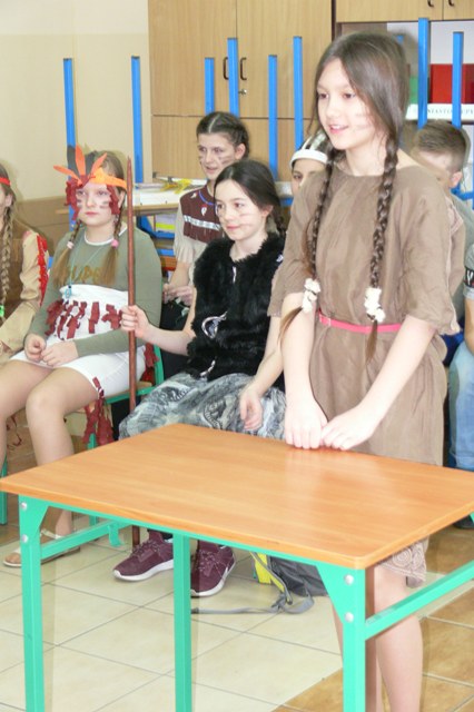 W dniu 06.03.2018 r. sala lekcyjna zamieniała się na godzinę w salę sądową, w której odbyła się rozprawa przeciwko wyprawom geograficznym. Uczestniczyli w niej uczniowie klasy V i dzieci z oddziału przedszkolnego wraz z wychowawczynią panią Urszulą Nowak. Oskarżonymi byli Bartosz Staszak i Arkadiusz Herudziński, którzy jako konkwistadorzy plądrowali ziemie Nowego Świata i przyczynili się do zagłady cywilizacji indiańskich. Ich obrońcami byli: Bartosz Molenda i Konrad Wilczewski. W rolę sędziego wcielił się Bartłomiej Purul, który sprawnie i rzeczowo poprowadził rozprawę. Natomiast nieugiętym i stanowczym prokuratorem był Michał Rusik, który domagał się dla oskarżonych kary dożywocia. Rozprawa sądowa toczyła się zgodnie z planem. Na sali sądowej nie zabrakło przedstawicieli Indian. Reprezentowali ich m.in. Weronika Blimka, Nikola Głowacka, Weronika Nierychła, Nadia Gołdych, Amelia Konieczka i Julia Wittig. W grupie Europejczyków znaleźli się: Jakub Strzelczyk, Jakub Hubert Strzelczyk oraz Sebastian Strzelczyk. Zeznania wszystkich świadków oraz cały przebieg rozprawy zapisywała i dokumentowała Patrycja Baranowska w roli protokolantki. Natomiast o porządek podczas rozprawy dbała straż sędziowska w osobach: Karol Gorzelańczyk i Fabian Tylkowski. Po zakończeniu postępowania dowodowego i narady sąd ogłosił wyrok, przychylając się bardziej do stanowiska prokuratora Rusika. Sędzia Purul zdecydował się na 25 lat pozbawienia wolności dla oskarżonych.