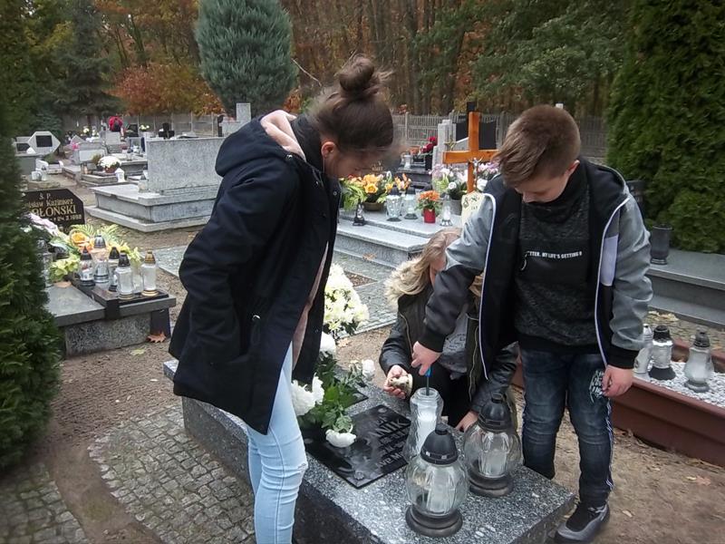 Odwiedziliśmy również groby nauczycieli, którzy pracowali w naszej szkole. W cichej modlitwie i zadumie oddaliśmy im wdzięczność. „Wdzięczność jest doskonałym, danym nam posiadaniem niekończącego się życia w jednym wszystko ogarniającym teraz”. (Boecjusz)