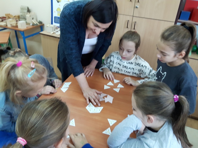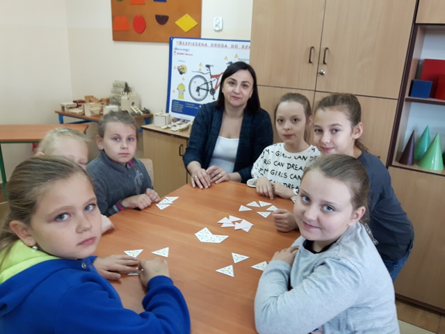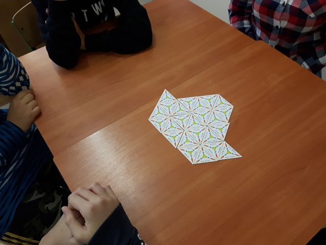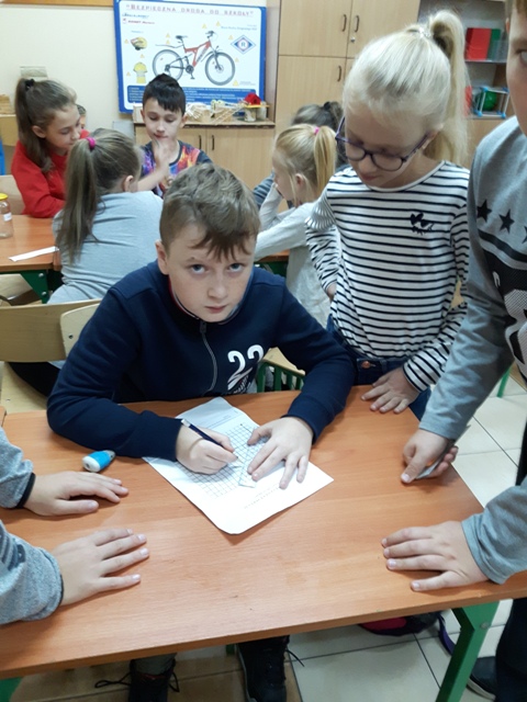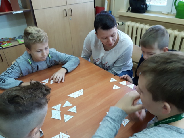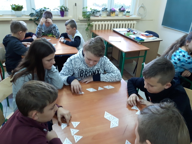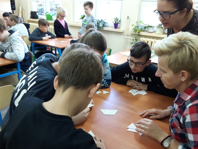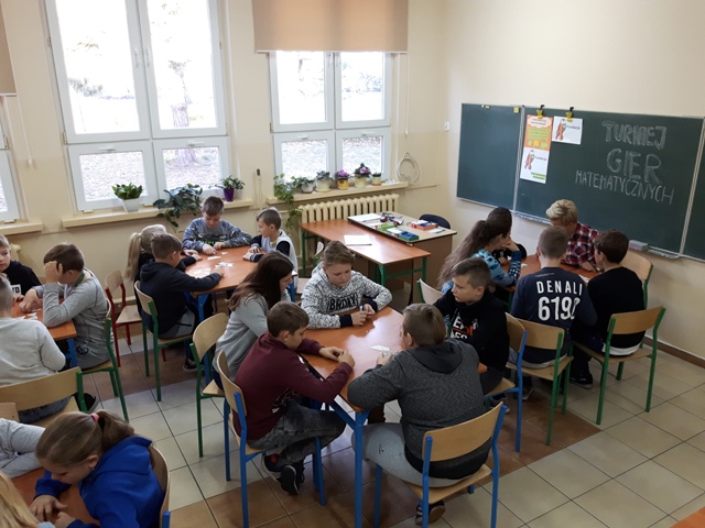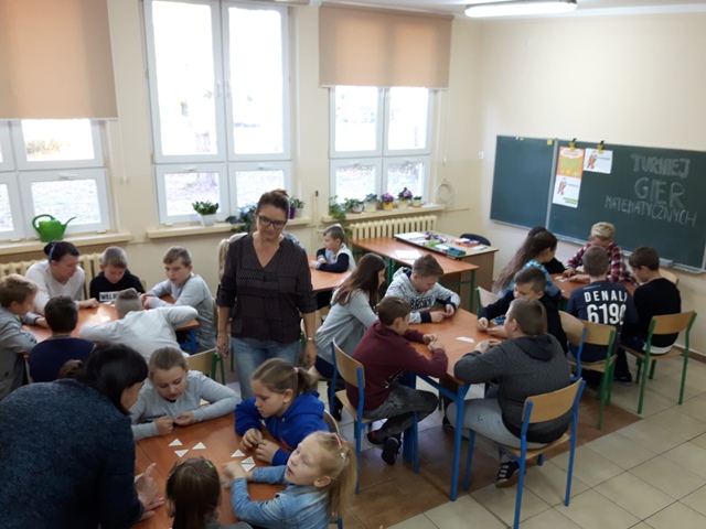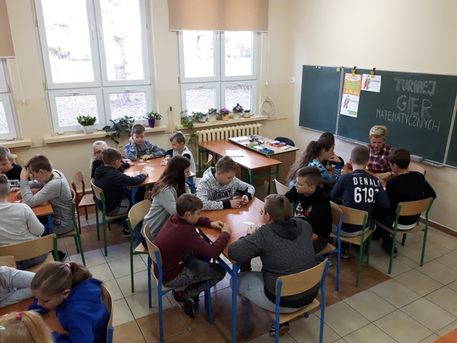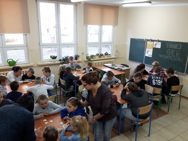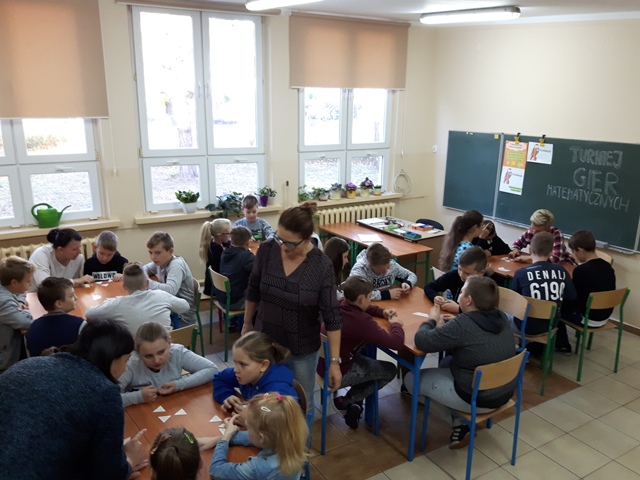 Kolejnym przedsięwzięciem był turniej gier planszowych z udziałem rodziców, w czasie gry ćwiczono koncentrację i strategię myślenia. Gry schubitrix dotyczące czasu, jednostek długości i mnożenia do tysiąca zachęcały do nauki liczenia i nie były zajęciem nudnym i monotonnym. Dzięki tym zajęciom uzmysłowiliśmy uczniom, że można wykorzystać wiedzę teoretyczną podczas zabawy i gier matematycznych i wtedy nauka jest o wiele przyjemniejsza. Zwycięskie drużyny zostaną nagrodzone na podsumowaniu projektu.