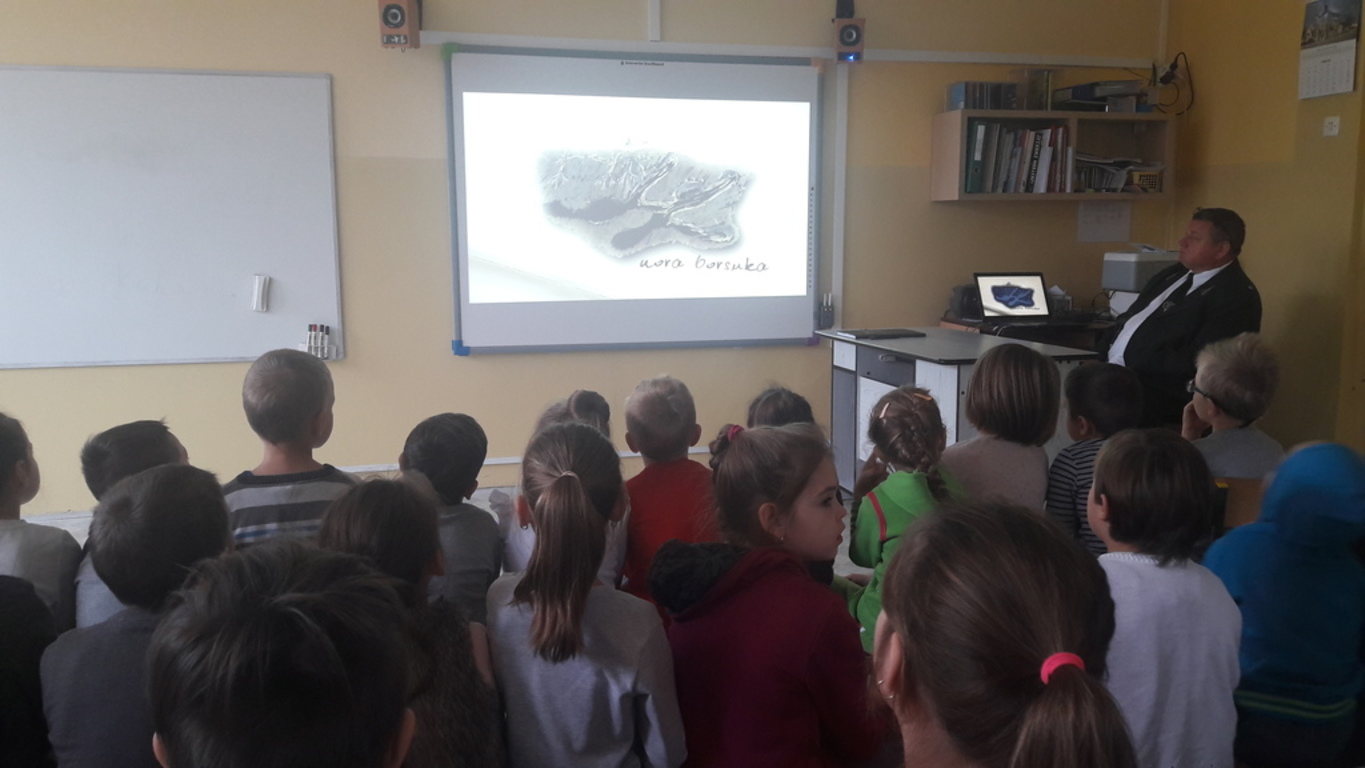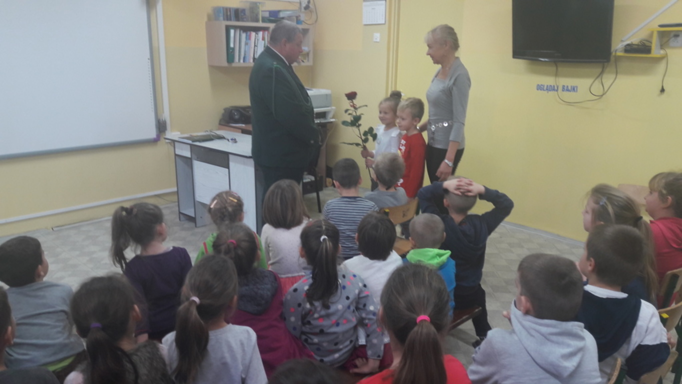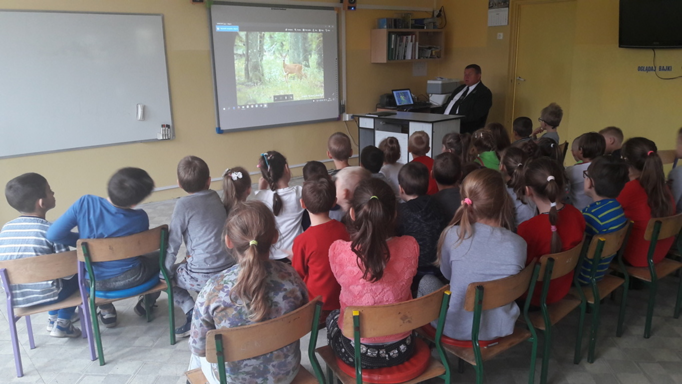 W dniu 21.11. 18 r. przybył do naszej szkoły myśliwy. W spotkaniu brali udział uczniowie klas ,,0 – III”. W przedstawionej prezentacji myśliwy pokazał życie zwierząt w ich naturalnym środowisku. Pogłębił wiedze uczniów na ten temat. Uczniowie słuchali z zainteresowaniem i zadawali pytania. Myśliwy obdarował każde dziecko, wręczając książkę – kolorowankę edukacyjną o zwierzętach. Dzieci podziękowały za przybycie wręczając kwiatek.