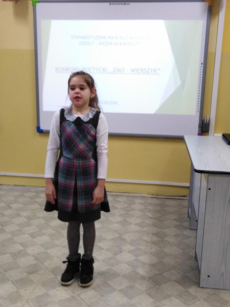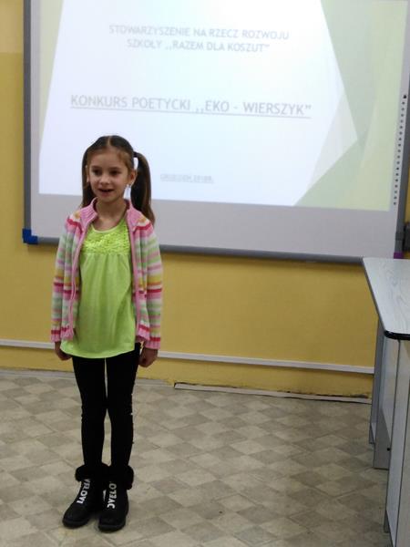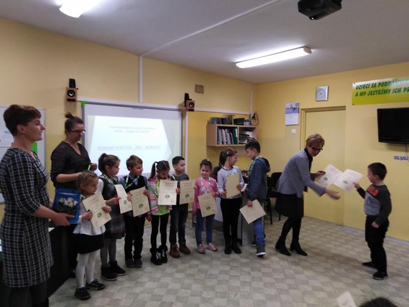 Konkurs miał za zadanie pobudzanie aktywności proekologicznych, rozwój talentów poetyckich i recytatorskich wśród uczniów naszej szkoły. Młodzi ekolodzy zmierzyli się z wymagającym zadaniem- najpierw napisania, a potem recytacji swego wiersza o tematyce ekologicznej. Szczególnie wśród młodszych dzieci konkurs cieszył się zainteresowaniem. Powstały wiersze rymowane i wiersze białe-wszystkie przekonywały do dbałości o środowisko naturalne.