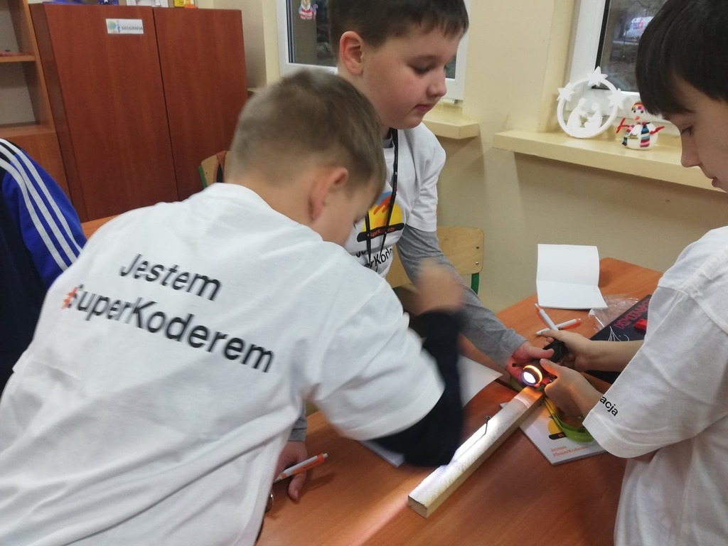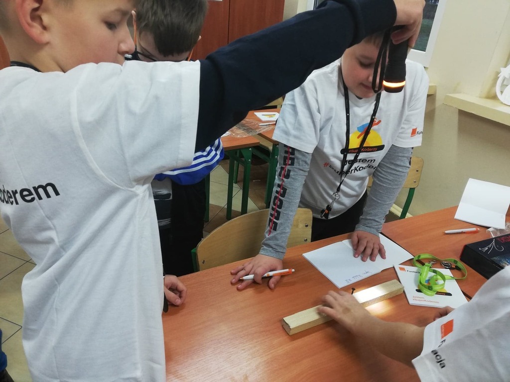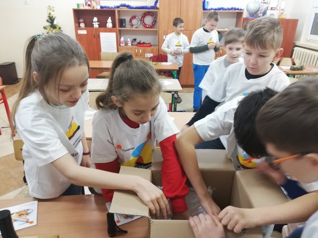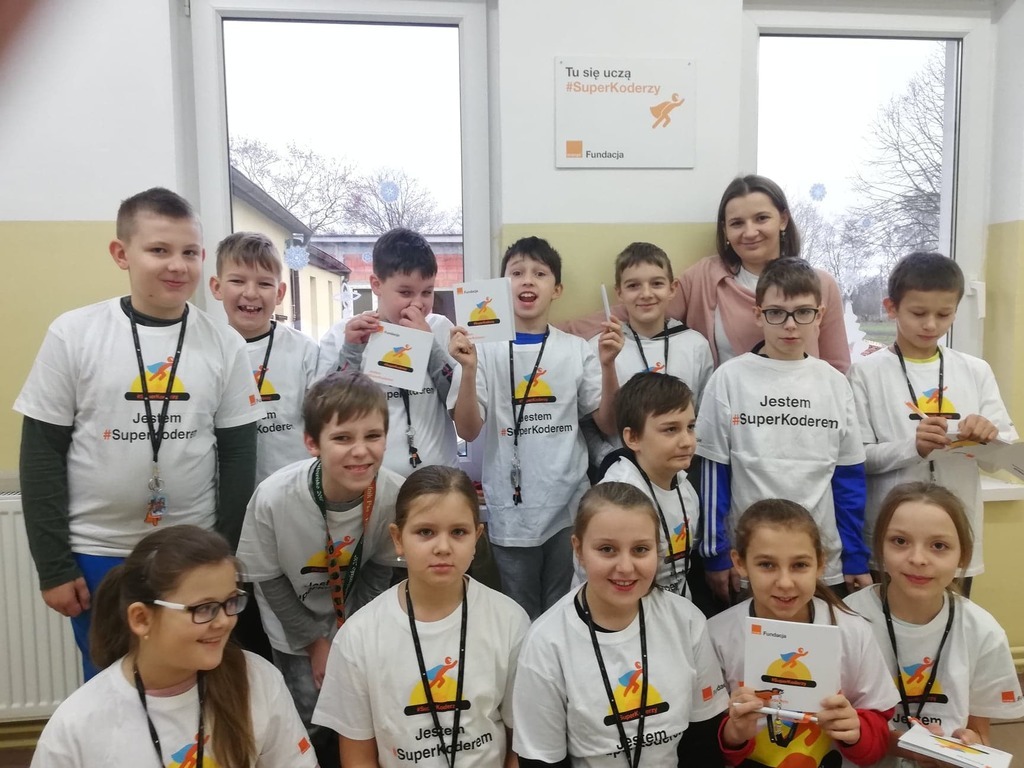 Uczniowie klasy IV od września tego roku szkolnego, biorą udział w programie #SuperKoderzy. Uczą się programowania, kodowania oraz pogłębiają wiedzę przyrodniczą, poznają zjawiska atmosferyczne oraz przeprowadzają doświadczenia. Fundacja Orange, która jest organizatorem tego programu, przysłała dla naszych SuperKoderów paczkę z upominkami w postaci koszulek, smyczy, breloczków, długopisów i notesów. Otrzymane prezenty sprawiły radość naszym uczniom. Teraz czekamy na kolejną paczkę z materiałami, które pomogą nam w przeprowadzaniu kolejnych badań.