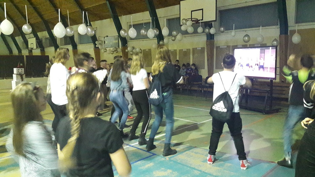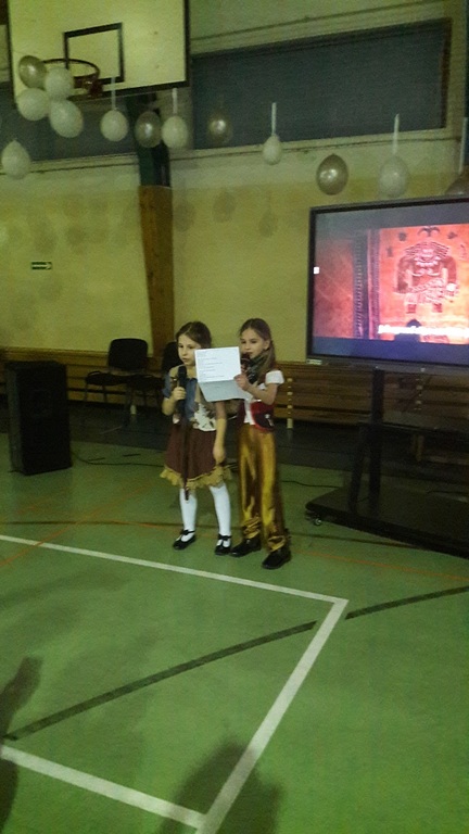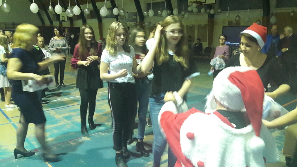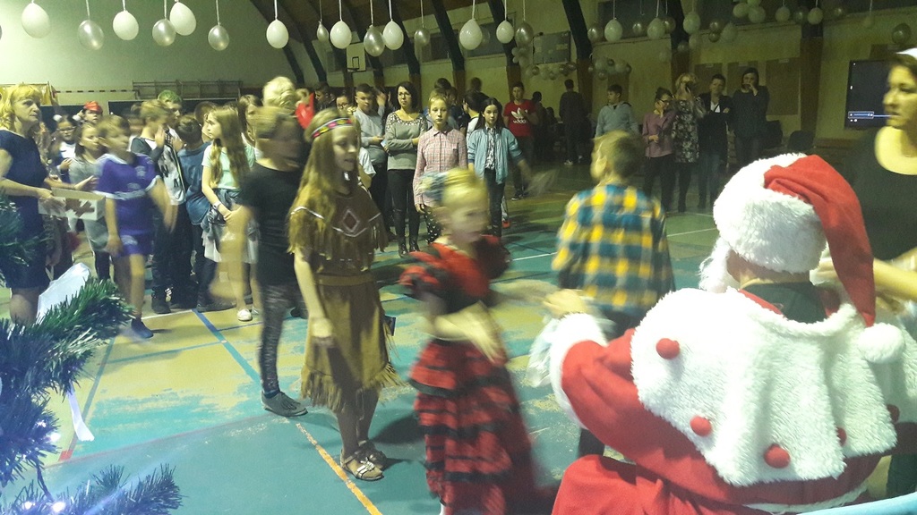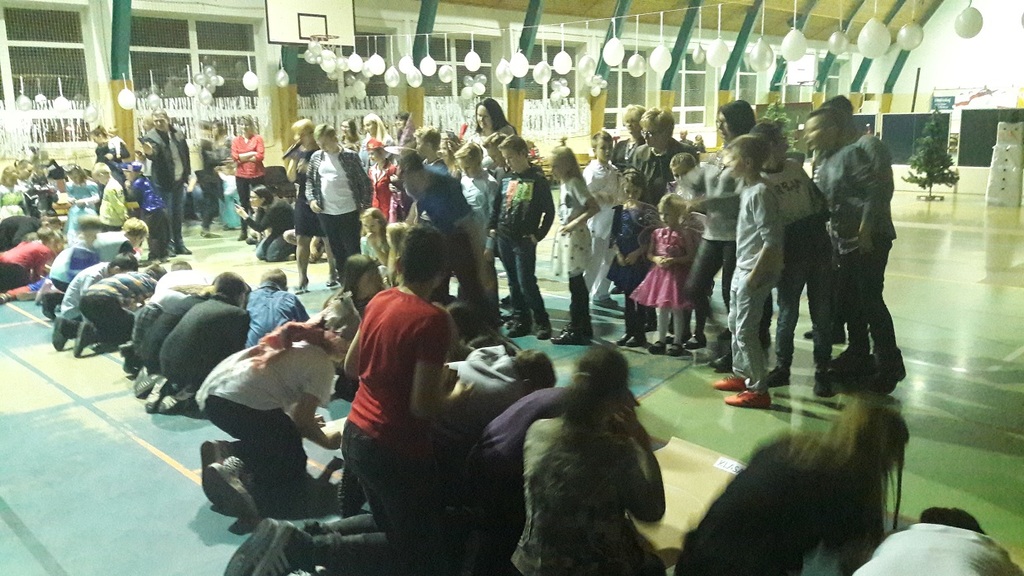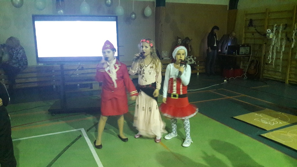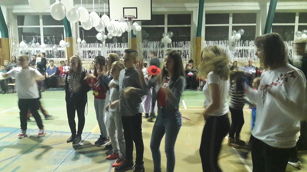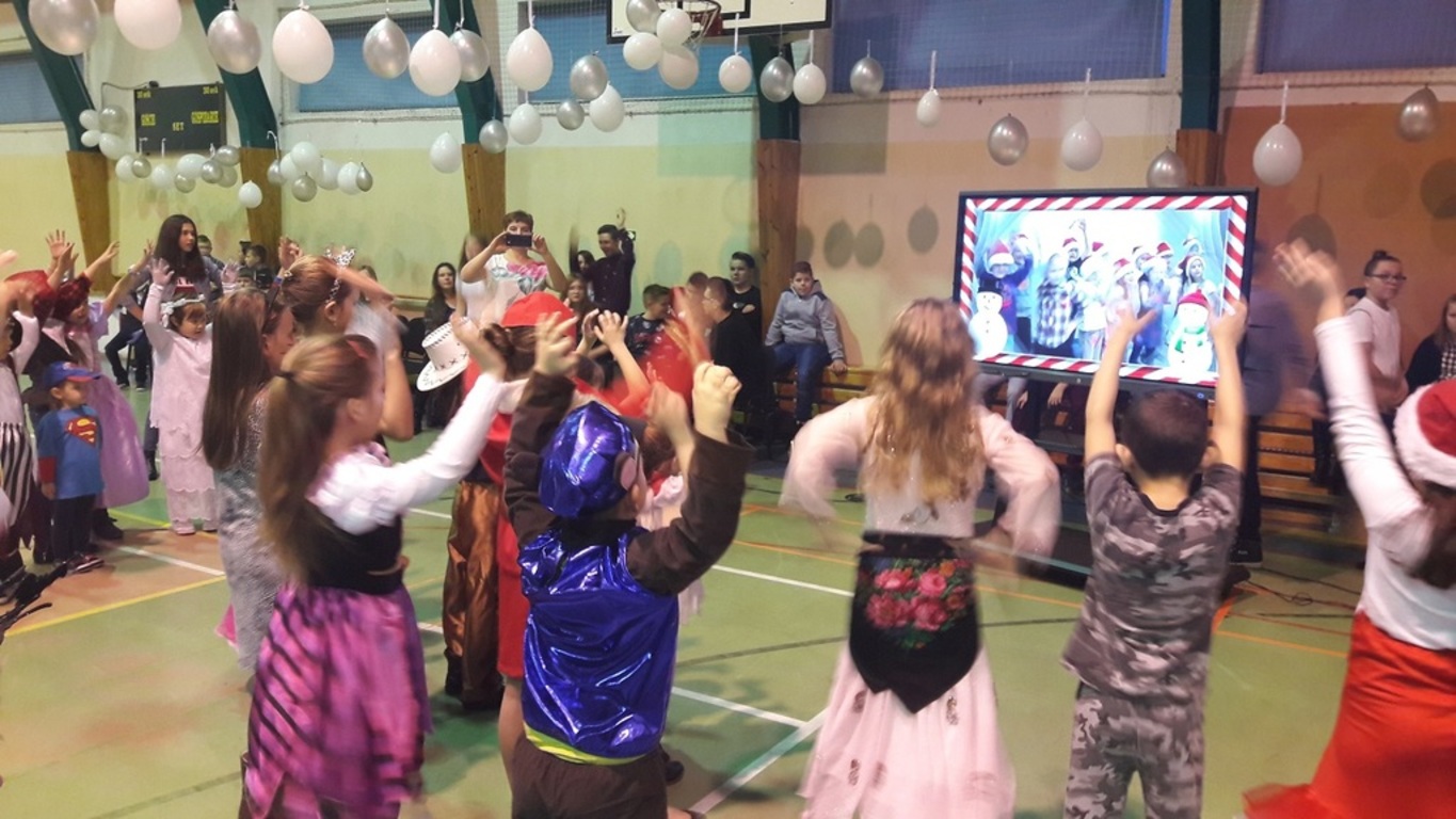11 stycznia 2019r. w naszej szkole odbyła się huczna zabawa karnawałowa dla uczniów połączona z wizytą Mikołaja. Tego dnia sala gimnastyczna wyglądała inaczej niż na co dzień, zamieniła się bowiem w salę balową. Udekorowana białymi i srebrnymi balonami, z przeróżnymi bałwanami, zachęcała do szampańskiej zabawy. Społeczność szkolna bawiła się przy skocznej muzyce, którą trafnie dobrał nauczyciel muzyki Pan Andrzej Rydzewski. Podczas balu zostały przeprowadzone różne konkursy. Każdy uczeń mógł zaprezentować się w konkursie ,,Otwarty mikrofon” . Najbardziej do tańca porwała piosenka My3 ,,Mamaje” w wykonaniu Zuzanny, Marysi i Gabrysi z klasy III. Drugie miejsce zajęły Julka, Maja i Daria z klasy IV z utworem Moniki Lewczuk ,,Ty i ja”, natomiast trzecie miejsce wywalczyły piosenką Natalii Nykiel ,,Pół kroku stąd” uczennice klasy I Julka i Agata , którym towarzyszył Daniel z klasy V.
