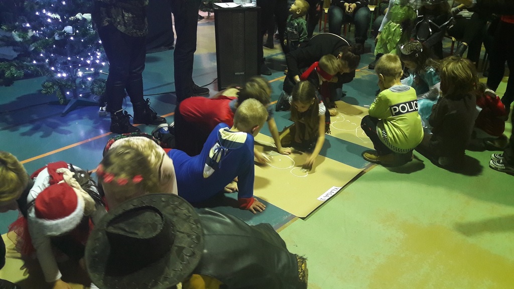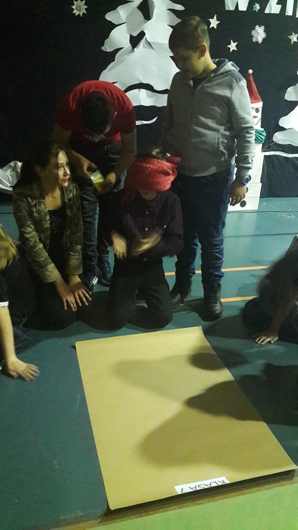 Wiele emocji wzbudził konkurs plastyczny ,,Malujemy bałwana z zamkniętymi oczyma”. Czteroosobowe zespoły klasowe musiały wykazać się kreatywnością w malowaniu tej śnieżnej postaci. W kategorii klas 0 – III zwyciężyła klasa I, natomiast w kategorii klas IV – VI wygrała klasa V, w kategorii klas VII – VIII zwycięstwo przypadło klasie VIII. Zwycięskie klasy nagrodzono grami edukacyjnymi, a pozostałe klasy otrzymały słodkości.