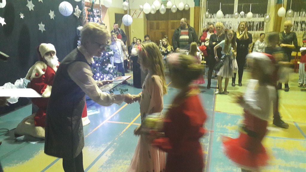 Do naszej szkoły chodzą same ,,anioły” więc każdy zasłużył na prezenty. Strudzony Mikołaj obdarował uczniów, nie zapomniał o Dyrektorze, nauczycielach i pracownikach szkoły.