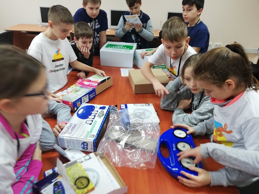 W paczce znalazły się materiały edukacyjne, takie jak: zestawy modeli energii odnawialnej, mierniki prędkości wiatru i temperatury, stacje pogody, kompasy. Otrzymane materiały będą nam pomocne w realizacji kolejnych zajęć. Cieszymy się bardzo i już nie możemy doczekać się, kiedy je przetestujemy.