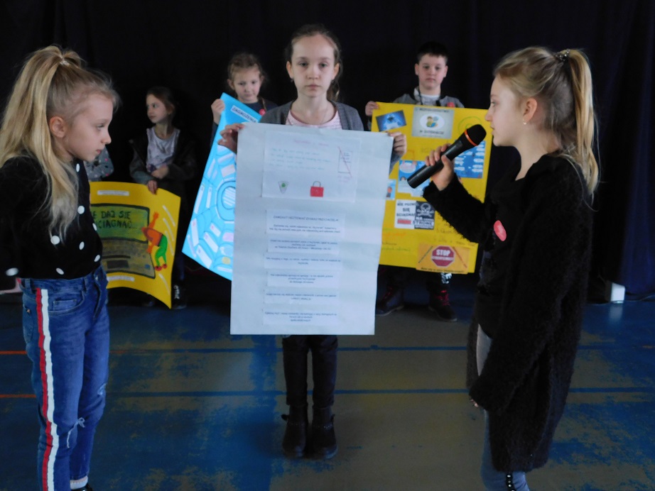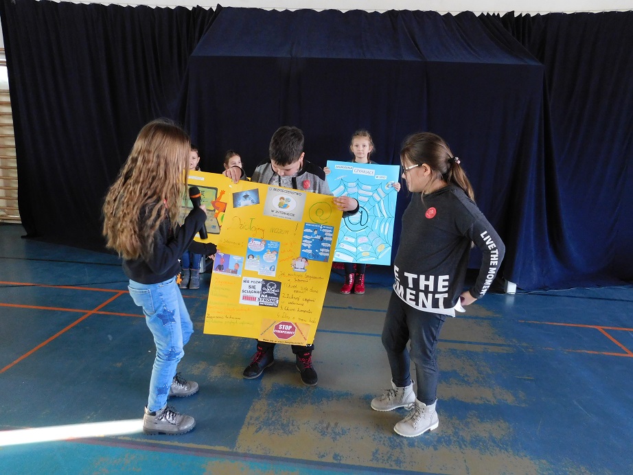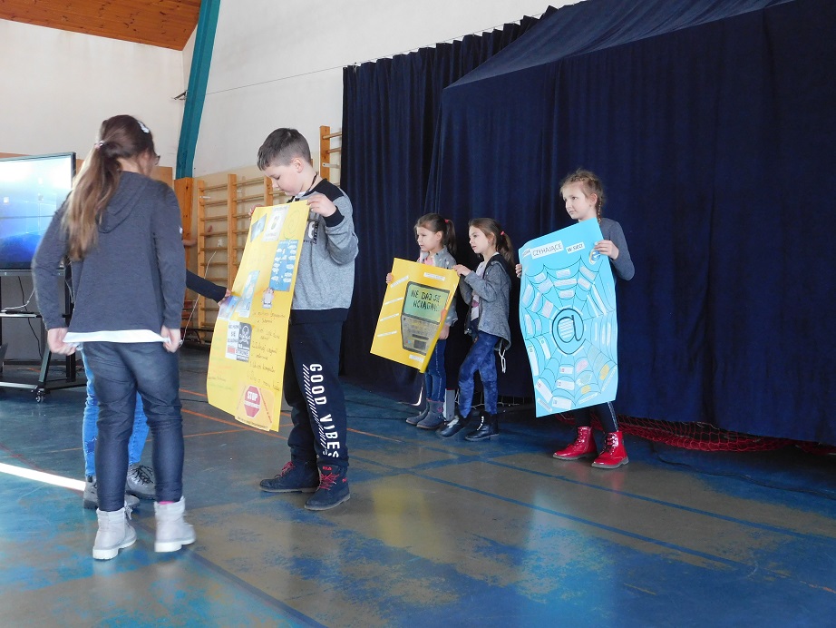 Klasy IV-VIII zgodnie ze scenariuszem przeprowadziły podczas zajęć z wychowawcą pogadankę na temat efektywnego korzystania z sieci jako alternatywy wobec zachowań ryzykownych. Uczniowie zapoznali się z zagrożeniami prywatności w sieci, oglądali filmy edukacyjne o bezpieczeństwie w Internecie.