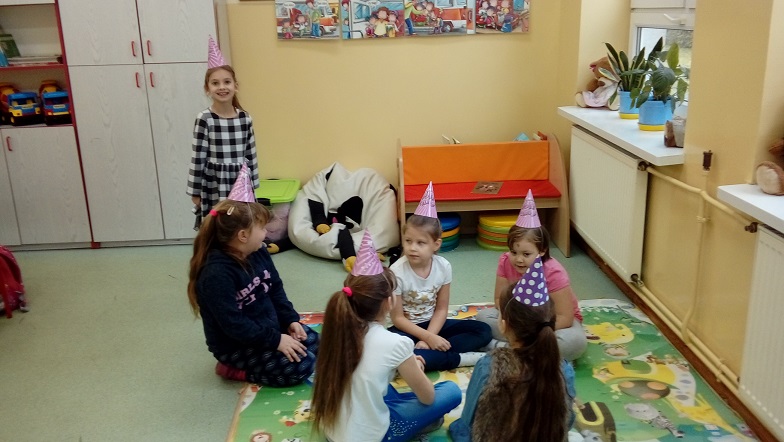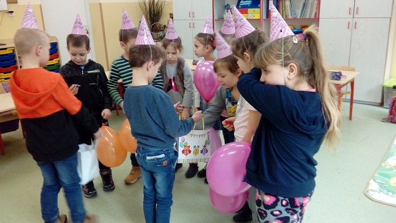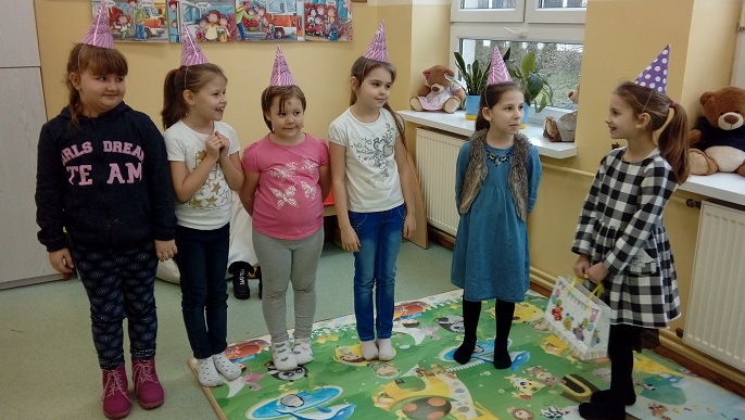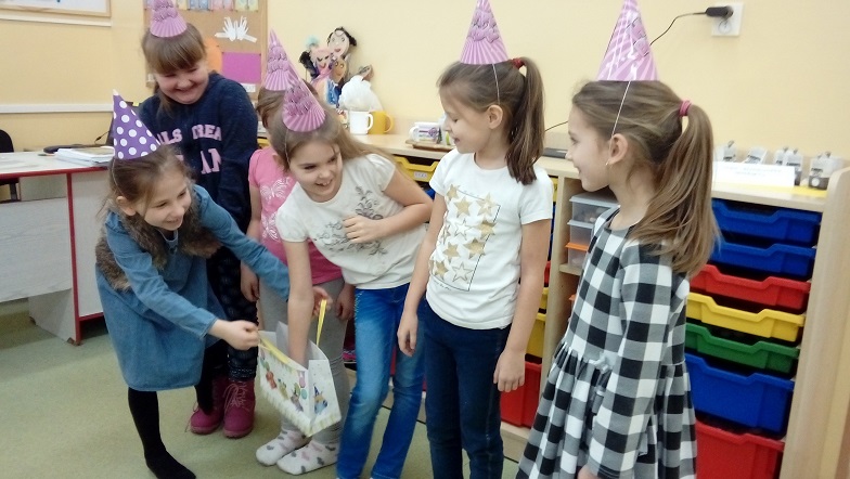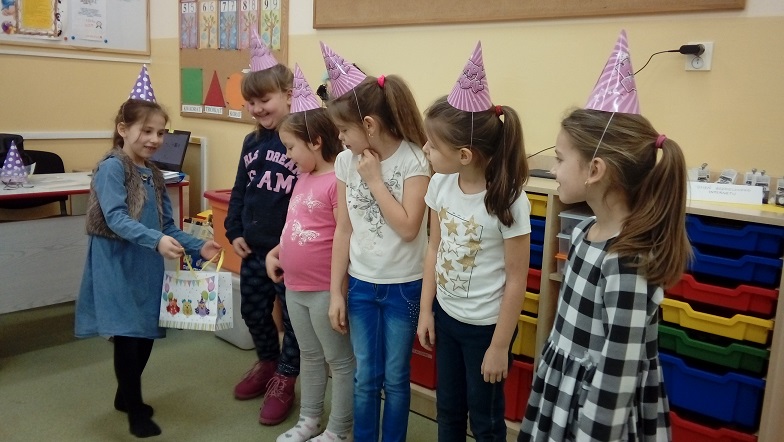 Pierwszaki uroczyście obchodzą w klasie swoje urodziny. Jest to bardzo szczególny dzień. Dzieci otrzymują urodzinowe czapeczki, są balony i świetna zabawa. Jubilat częstuje wszystkich słodkościami, a w prezencie otrzymuje urodzinowy znaczek. Swoje urodziny obchodzili już :Oskar, Magdalena, Wiktoria, Ewa, Kacper i Dawid.