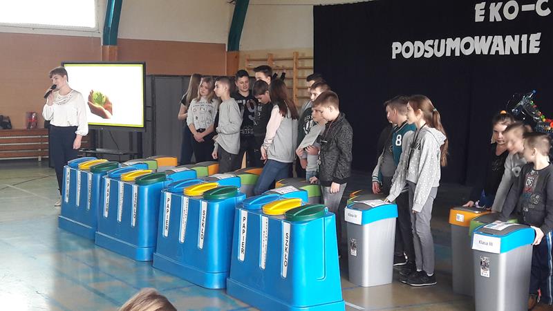 Założenia tego konkursu przypomniała Bożena Koniecka. Zadaniem uczniów było wykonanie ,,Eko – cudaka” z różnorodnych surowców wtórnych. Przy ocenie prac komisja brała pod uwagę również kreatywność i wkład pracy uczniów oraz estetykę wykonania. Jury powołane przez organizatorów przyznało następujące nagrody: