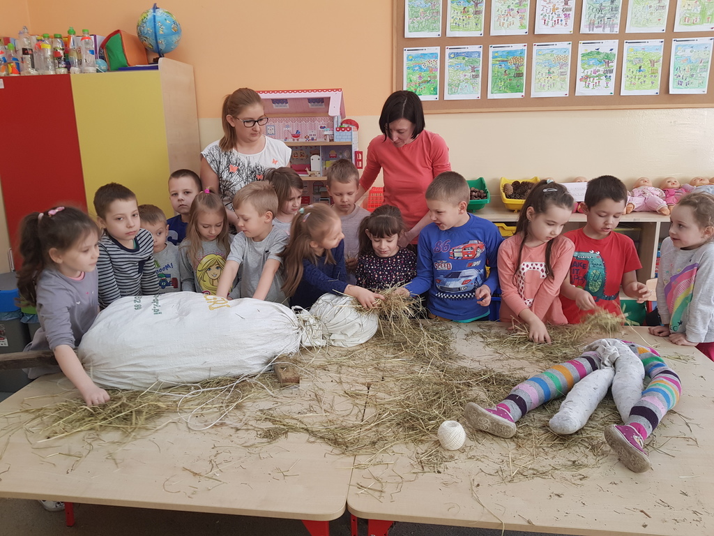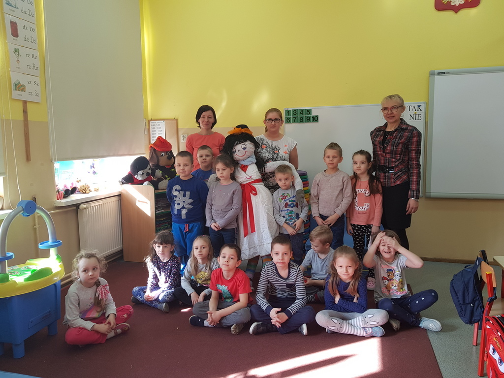 W środę 20.03.2019 r. w oddziale przedszkolnym wielkie poruszenie. Dzieci poprzynosiły niezbędne materiały. Z pomocą rodziców z trójki klasowej wykonywały Marzannę - symbol odchodzącej zimy. Nasza Marzanna będzie brała udział w konkursie szkolnym
