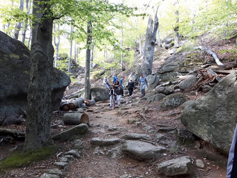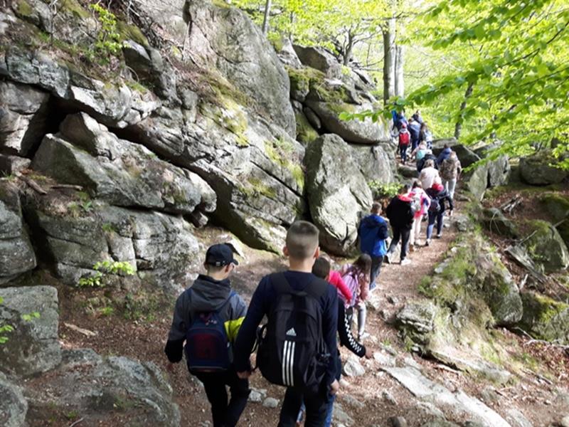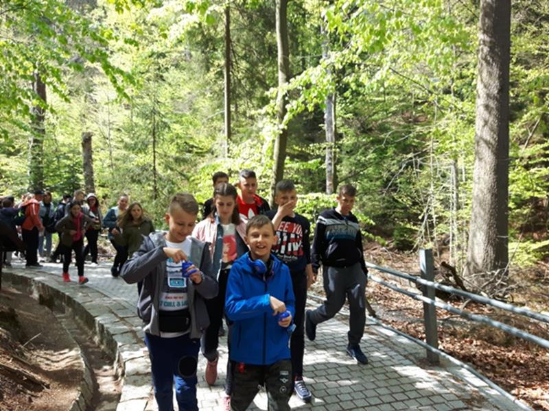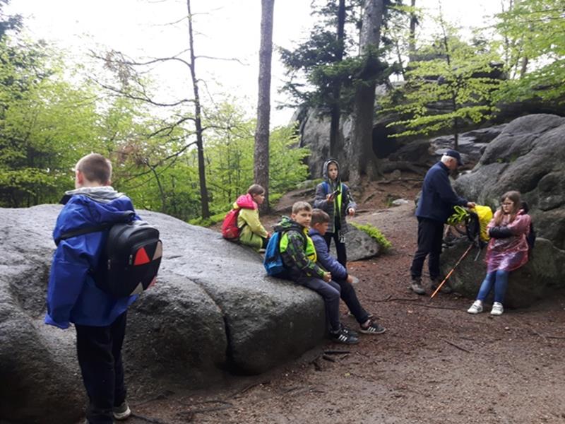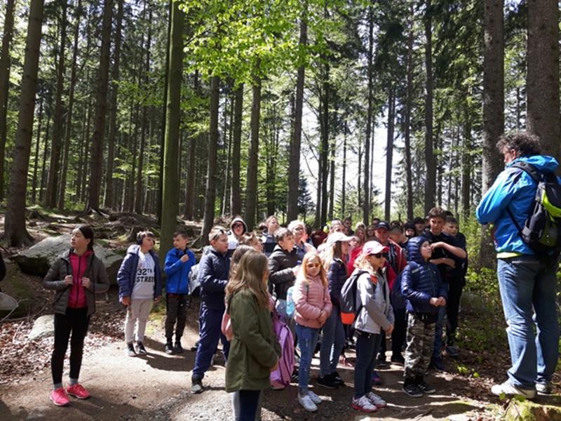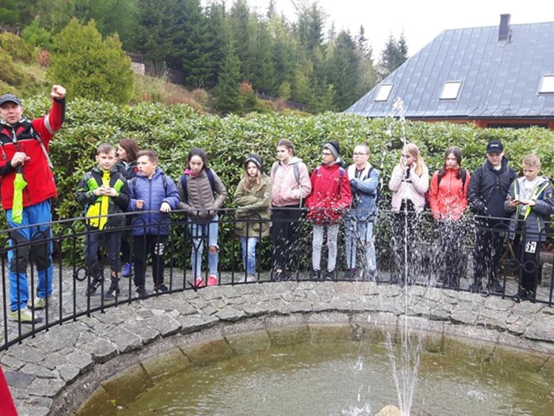 Z Krzyżnej Góry podziwialiśmy wspaniałe widoki na całą panoramę Karkonoszy od Przełęczy Okraj aż po Przełęcz Szklarską, dolinę Bobru, Rudawy Janowickie, Góry Kaczawskie, Kotlinę Jeleniogórską i okoliczne urokliwe wsie. Po wędrówce przejechaliśmy do Żelaznego Tygla Walońskiego, który znany również jako Osada Poszukiwaczy Skarbów to jedyny w swoim rodzaju park historyczno-kulturowy, poświęcony średniowiecznym Walonom i dawnej społeczności Szklarskiej Poręby, którą tworzyli przede wszystkim górnicy, hutnicy, płatnerze, kowale, węglarze, cieśle, snycerze, tkacze, garncarze i piekarze. Uczniowie podziwiali zrekonstruowane urządzenia używane przez przodków ponad czterysta lat temu, mieli możliwość uruchamiania maszyn mogąc wcielić się w rolę Walończyków, brali udział w pokazie kowalskim (wykuwanie gwoździa kopalnianego). Po zwiedzaniu wzięli udział w konkursach i zawodach.