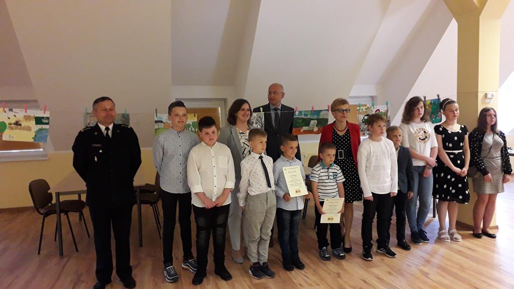 To już IX edycja Ogólnopolskiego Konkursu Plastycznego dla dzieci. W tym roku konkurs przebiegał pod hasłem „Bezpiecznie na wsi mamy: maszyna pracuje a dziecko obserwuje”. Zadaniem uczniów było wykonanie pracy plastycznej na temat zapobiegania wypadkom związanym z obecnością w gospodarstwie rolnym maszyn i urządzeń rolniczych. 22.05.2019r. odbyło się uroczyste podsumowanie etapu rejonowego tegoż konkursu przez przedstawicieli KRUSu w Słupcy. Uczeń z klasy VI Karol Gorzelańczyk zdobył III nagrodę a Szymon Kukulski z klasy IV wyróżnienie. Uczniowie oprócz okolicznościowych dyplomów otrzymali nagrody rzeczowe ufundowane przez Starostwo Powiatowe w Słupcy. Nagrody wręczał Starosta Jacek Bartkowiak. Podczas tej uroczystości uczniowie mogli poszerzyć swoją wiedzę z zakresu bezpieczeństwa. Przedstawiciele PSP w Słupcy prezentowali symulację powstawania pożarów w różnych pomieszczeniach za pomocą multimedialnego sprzętu. Przeprowadzona prelekcja szczególnie dotyczyła zasad bezpieczeństwa podczas pracy i zabawy w gospodarstwie rolnym ze zwróceniem uwagi na niebezpieczne czynności i sytuacje związane z obecnością w gospodarstwie maszyn i urządzeń rolniczych. Uroczystość przebiegała w miłej atmosferze. Nie zabrakło również słodkiego poczęstunku i sympatycznych rozmów w gronie laureatów konkursu, ich rodziców, nauczycieli i zaproszonych gości.