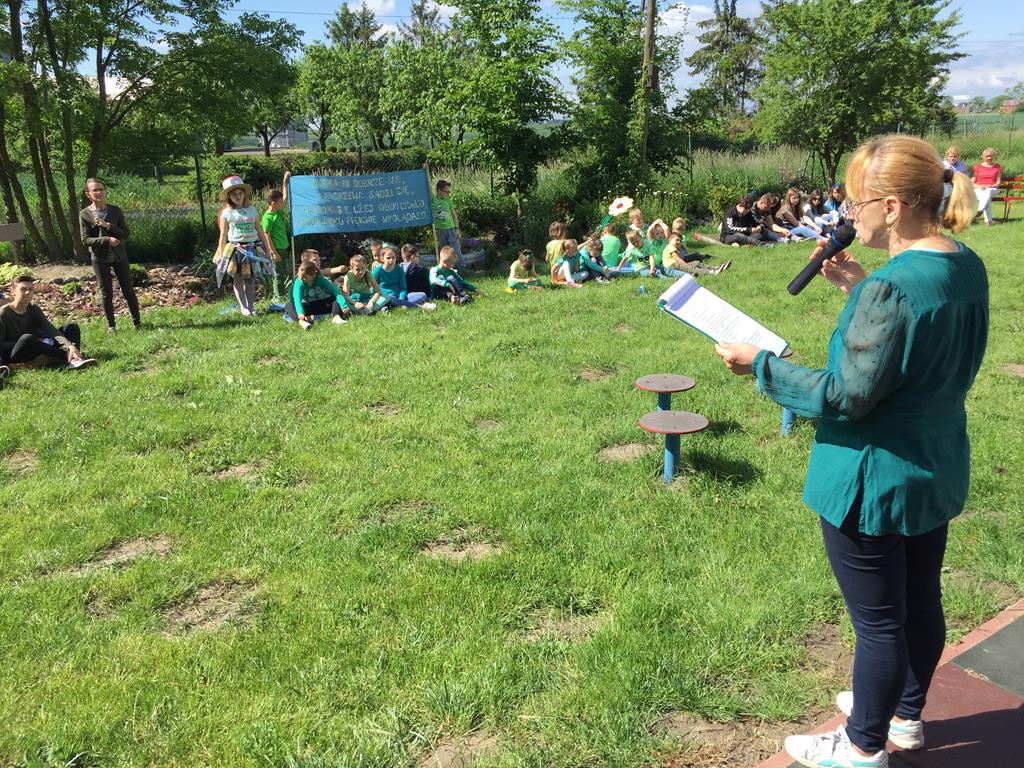 Tego dnia cała społeczność szkolna w zielonym korowodzie udała się na przyszkolne tereny, aby podsumować działania podjęte w ramach innowacji. To właśnie w marcu 2018r., po konsultacjach z Dyrektorem Szkoły, każda klasa otrzymała wydzielony teren na ogródek przyrodniczy. Ustalono zadania i terminy ich wykonania. Przy realizacji tej innowacji współpracowały wszystkie środowiska szkolne: nauczyciele, uczniowie i rodzice. W zielonym plenerze każda klasa zaprezentowała swój ogródek i omówiła zadania, które wykonała. Z przeprowadzonych klasowych prezentacji jasno wynikało, że szkolny ogród przyrodniczy był głównym źródłem poznania środowiska roślin oraz bodźcem do obserwacji i przeżyć. Stał się również miejscem badawczym uczniów.