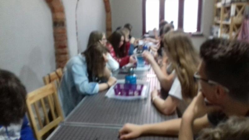 W piątek 17 maja grupa uczniów z klasy VI, VII i VIII udała się na wycieczkę do Torunia pod opieką pani Edyty Selka i Wiesławy Frydrychowicz. Uczniowie mogli lepiej zrozumieć istotę wielu zjawisk , reakcji chemicznych oraz poszerzyć swoją wiedzę na temat kuchni molekularnej. Pod kontrolą eksperta sami stworzyli molekularne spaghetti , kawior i odwróconą „sferyfikację”. Począwszy od ważenia, mieszania, podgrzewania samodzielnie przygotowali swoje dania. Młodzież z zaciekawieniem i precyzją tworzyła swoje potrawy, układając na talerzu molekularne obrazy. Podczas degustacji największą popularnością cieszył się kawior o smaku coli i molekularne owocowe spaghetti. Po pobycie w Centrum Chemii w Małej Skali nadszedł czas na zwiedzanie Starego Miasta, zakup pamiątek i pierników. Bogatsi o nowe wiadomości i umiejętności zdobyte przez zabawę wróciliśmy do domu.
