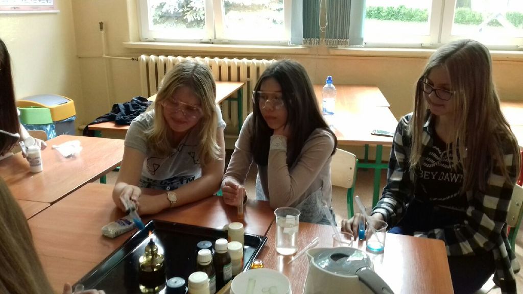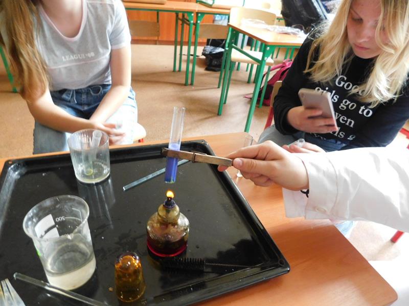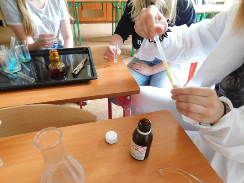 Uczniowie klasy siódmej i ósmej Szkoły Podstawowej im. Józefa Janika w Koszutach uczestniczyli w zajęciach dodatkowych pt. Eksperymenty fizyczne i chemiczne w życiu codziennym, które miały charakter obserwacyjny i doświadczalny pod kierunkiem Pani Edyty Selki. Celem spotkań było zwiększenie samodzielności i poczucia odpowiedzialności, zaangażowanie uczniów i poprawę skuteczności uczenia, aktywizację oraz rozbudzenie ich spersonalizowanego rozwoju. Umiejętności, które młodzież wypracowała dały możliwość indywidualnego kierowania własną nauką. Na zajęciach wykorzystano metodę lekcji odwróconej, która była znakomitą alternatywą dla szkolnej rutyny, pozwalającą zaktywizować uczniów i zapoznać ich z nowymi technologiami, które stały się pomostem pomiędzy nauką odbywającą się w szkole i poza nią. Omawiane treści dotyczyły zagadnień z chemii i fizyki. Podczas spotkań młodzież miała okazję zapoznać się nowymi zjawiskami i przemianami zachodzącymi w kuchni oraz otaczającym nas świecie np. wykrywanie glukozy występującej w owocach podczas próby Tollensa i Trommera czy wykrywanie białek wykorzystując reakcję biuretową i ksantoproteinową. Samodzielne wykonanie prostych doświadczeń, określenie ich wyników i sformułowanie wniosków umożliwiło na zainteresowanie młodzieży przebiegiem zajęć, a także na zaangażowanie w proces badawczy wszystkich zmysłów, czego skutkiem było lepsze zrozumienie i zapamiętanie nowych zagadnień. Zajęcia dodatkowe były okazją do wyćwiczenia umiejętności posługiwania się językiem fizycznym i chemicznym oraz projektowania i opisywania doświadczeń. Charakter zajęć wymagał przestrzegania zasad bezpieczeństwa oraz efektywnej współpracy w grupach.